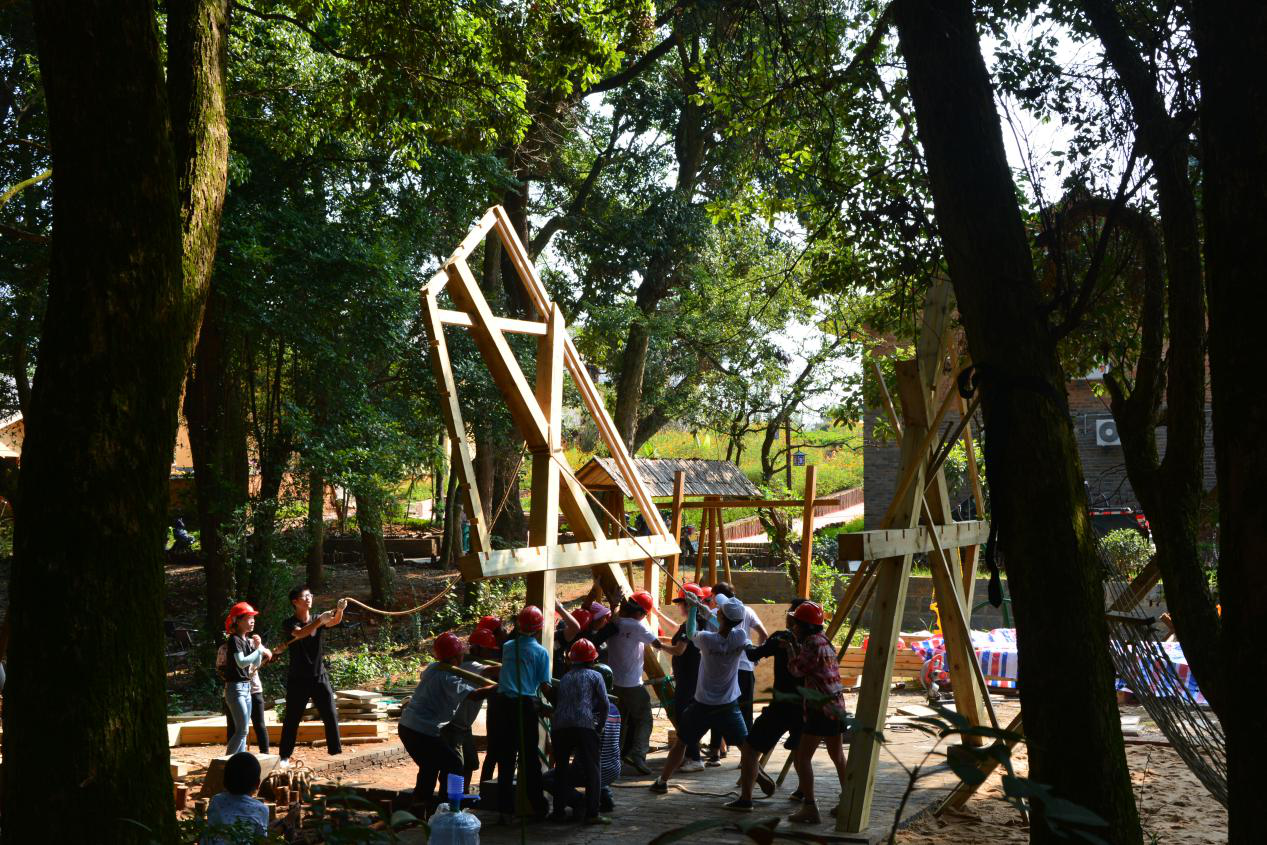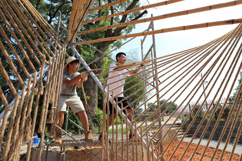 2018年夏天,21所來自國內(nèi)外的知名建筑高校在這里展開了“趣村夏木塘”國際高校建造大賽,以夏木塘村的山野、森林、水塘為底圖,以“趣村”為主題進(jìn)行設(shè)計(jì)與建造,探討人與自然、環(huán)境的關(guān)系,思考傳統(tǒng)鄉(xiāng)村與當(dāng)代城市、未來生活方式的關(guān)聯(lián),用設(shè)計(jì)喚醒鄉(xiāng)土。眾多村民參與了村莊新的營造,他們說“村子還是那個村子,只是比原來更美了”。