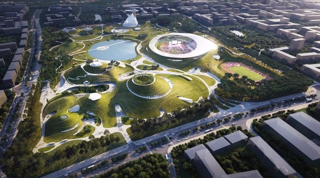 由馬巖松帶領的MAD建筑事務所設計的衢州體育公園近日在浙江省歷史名城衢州市開工建設。