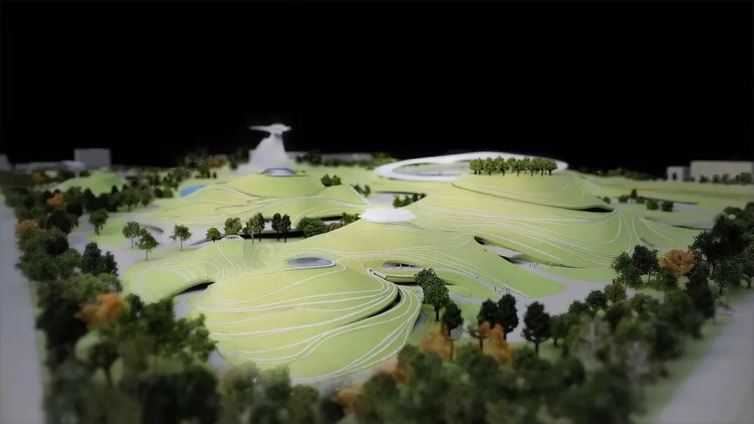浙江衢州,一個有著數(shù)千年歷史的文化名城,蘊藏著深厚的傳統(tǒng)文化和哲學思想,山水秀美,森林覆蓋率高達71.5%。底蘊深厚的歷史地域文化,以及自然山水是這座城市最寶貴的資源。MAD設想在現(xiàn)代城市中創(chuàng)造一處空靈靜謐的超現(xiàn)實的大地景觀藝術,好似外星幻境,成為城市未來的精神家園。