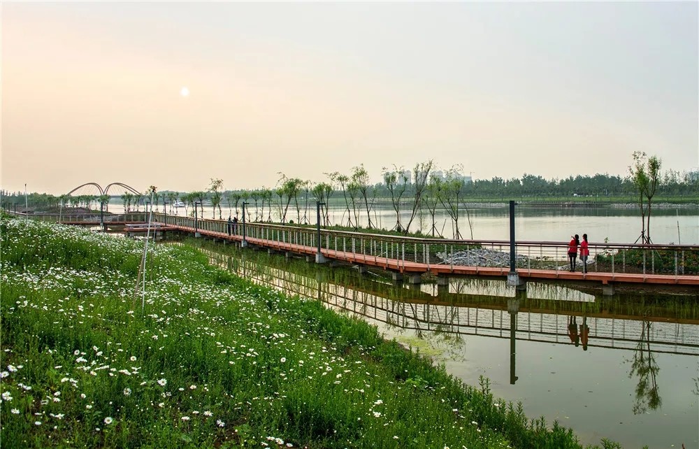 設(shè)計在對新汴河合徐高速至宿縣閘總長14公里河段的景觀風(fēng)貌研究基礎(chǔ)上,運(yùn)用生態(tài)設(shè)計手法建立了景區(qū)內(nèi)完整的雨水收集系統(tǒng),開放空間系統(tǒng)和慢行交通系統(tǒng)。生動展示了人與環(huán)境和諧共處的場景,實現(xiàn)了景觀的生態(tài)的彈性景觀,以及“城市與洪水為友”的設(shè)計理念。