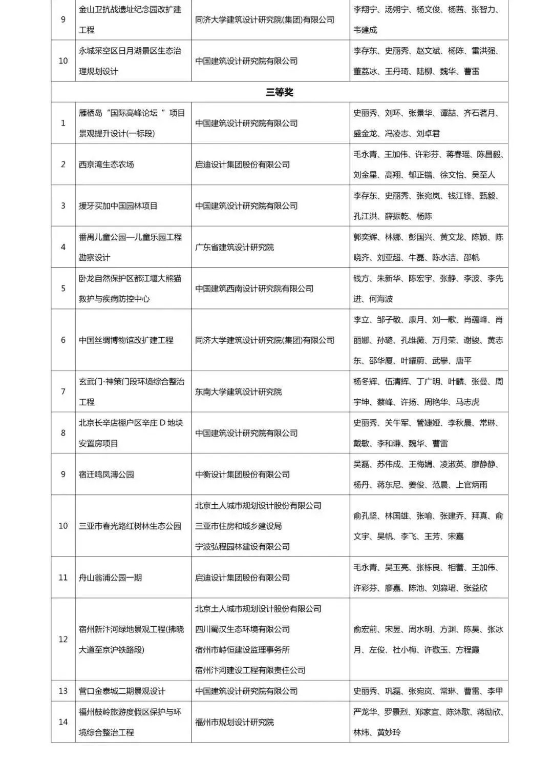 其中,建筑設(shè)計獎·園林景觀專業(yè)獎一等獎項目從全國各地的諸多參賽項目中產(chǎn)生,本屆共選出了來自華南理工大學(xué)建筑設(shè)計研究院、上海日清景觀設(shè)計有限公司、北京土人城市規(guī)劃設(shè)計股份有限公司、同濟(jì)大學(xué)建筑與城市規(guī)劃學(xué)院、中國建筑設(shè)計研究院有限公司等的8個項目,其中土人設(shè)計的宿遷三臺山森林公園和金華燕尾洲公園占二項。此外,土人設(shè)計的三亞市春光路紅樹林生態(tài)公園、宿州新汴河綠地景觀獲園林景觀專業(yè)獎三等獎。