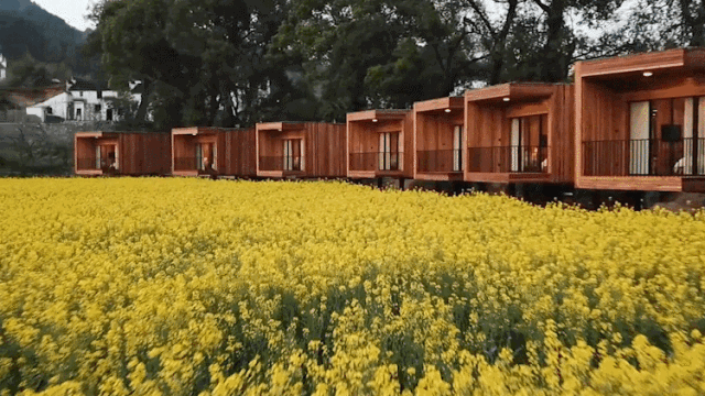 低耗能,低排放的可拆卸小木屋——望山蜂巢,保留了最好的巡檢司在花香鳥鳴中蘇醒,花海木屋中的生活輕易治愈躁郁的內(nèi)心。
