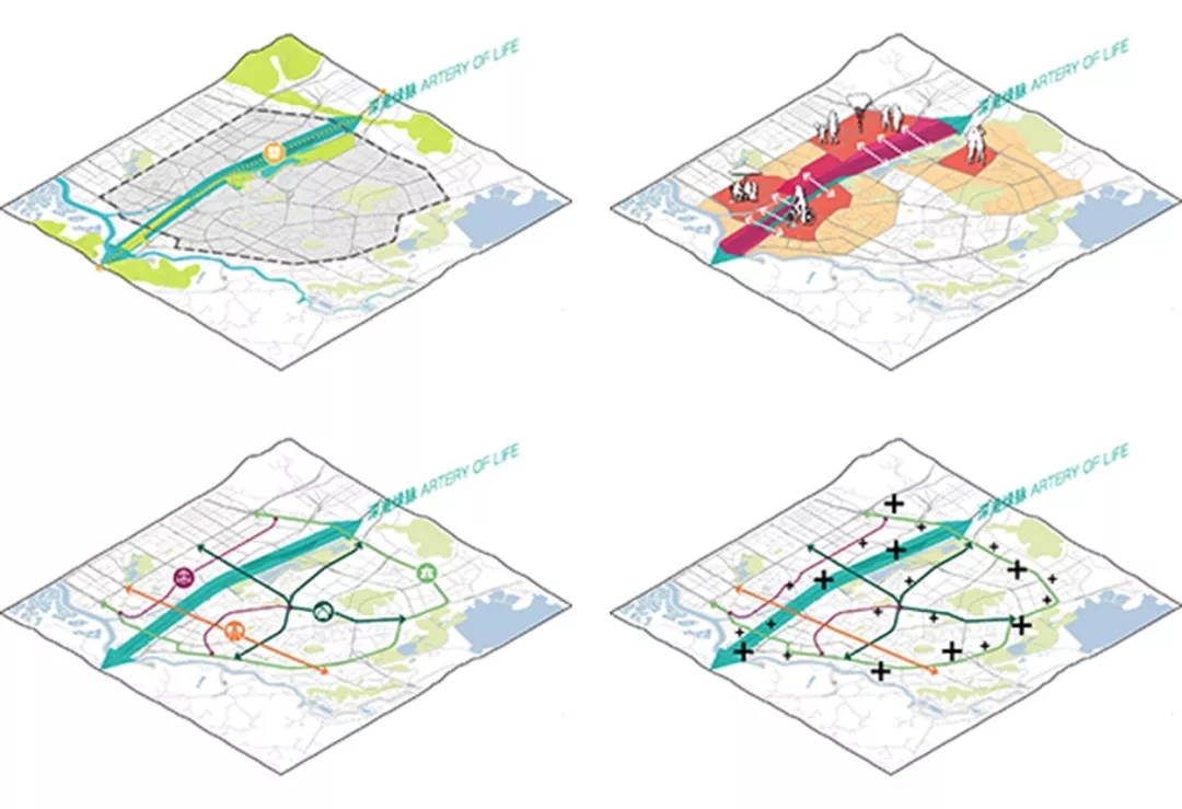 曾志強也針對面向未來的城市空間品質(zhì)提升,提到羅湖“三橫四縱”這個案例中,將原有單一功能的交通通道將轉(zhuǎn)化為城市新的公共生活界面,形成新型基礎(chǔ)設(shè)施。而這樣的轉(zhuǎn)變使得這些基礎(chǔ)設(shè)施成為帶動周邊城市更新的催化劑,發(fā)揮除交通之外更多的基礎(chǔ)設(shè)施和景觀作用。
