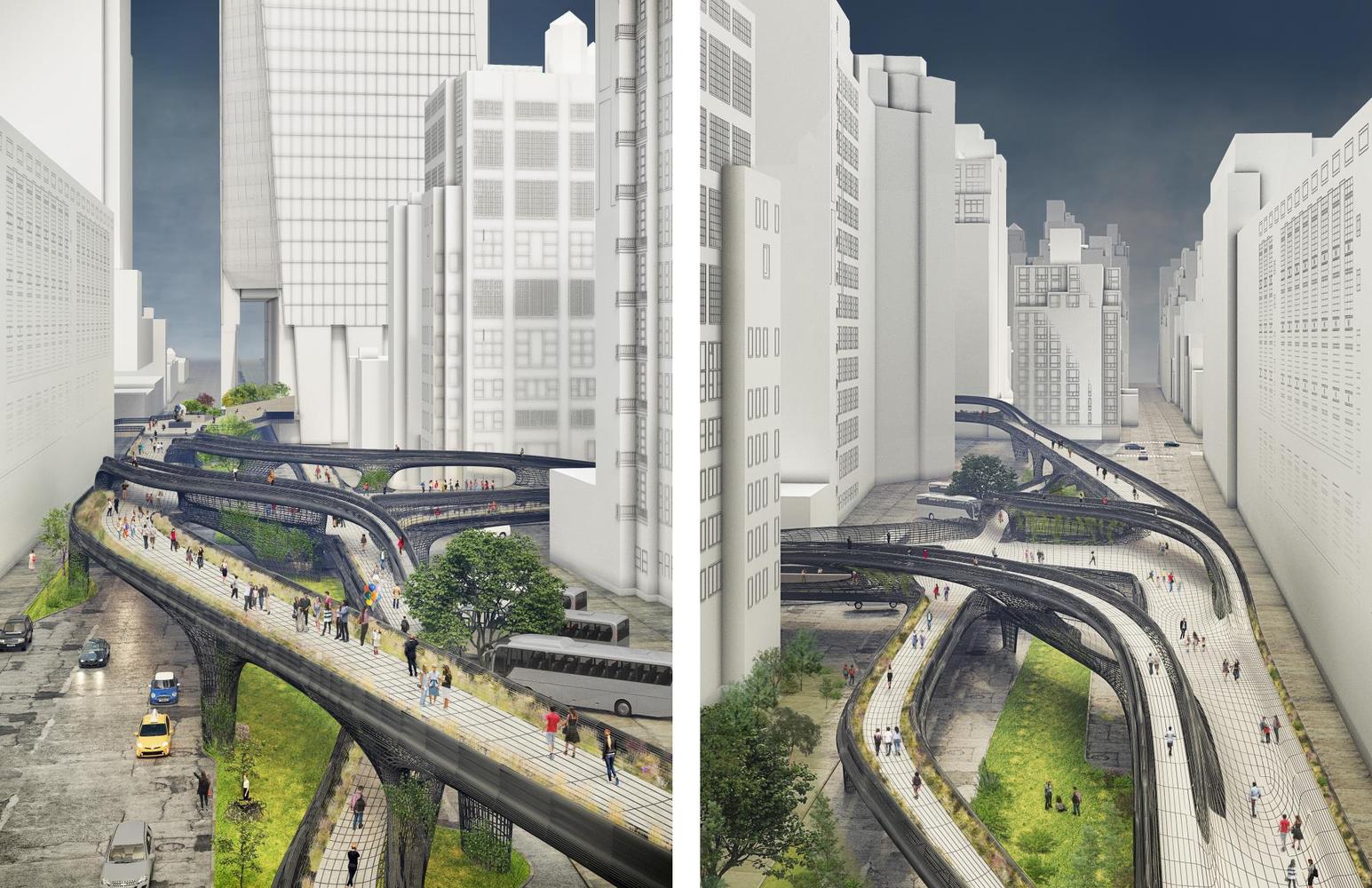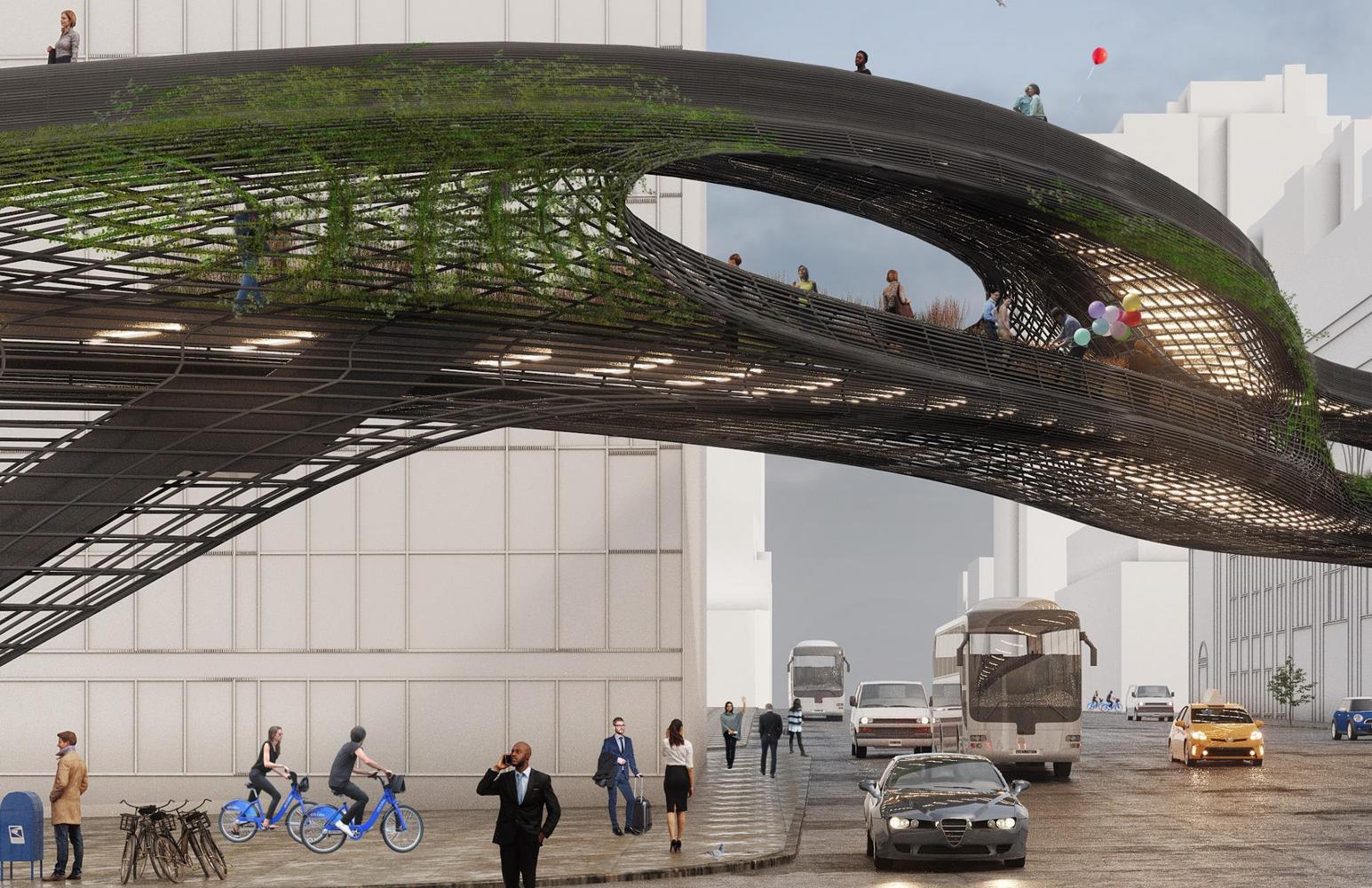 建筑及設(shè)計(jì)公司DXA Studio因其在紐約城市道路的設(shè)計(jì)而獲得了大獎(jiǎng)。該項(xiàng)目是提交給Construction 雜志的2019年設(shè)計(jì)挑戰(zhàn)賽作品,它將跨越第9大道,將新的Moynihan火車大廳同高線公園和哈德遜港口連接起來。該設(shè)計(jì)旨在開發(fā)當(dāng)代鋼結(jié)構(gòu)的新的潛能,為紐約創(chuàng)造一條標(biāo)志性的公共道路。