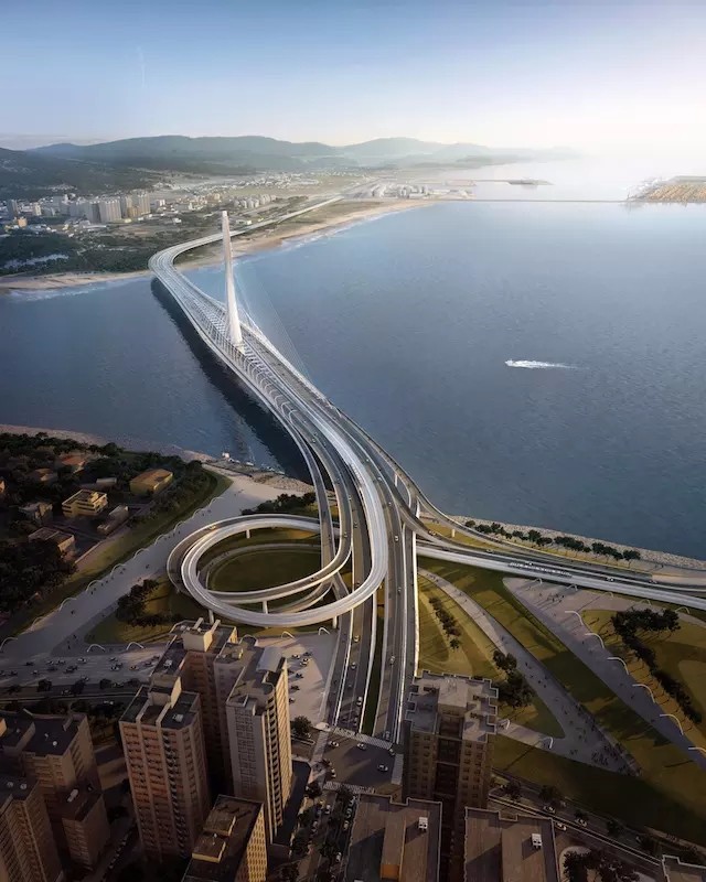 2015 年,扎哈·哈迪德建筑事務(wù)所(Zaha Hadid Architects)在臺(tái)灣公路總局發(fā)起的“淡江大橋國(guó)際競(jìng)圖”中獲勝,被任命設(shè)計(jì)這座 920 米長(zhǎng)的橋梁。