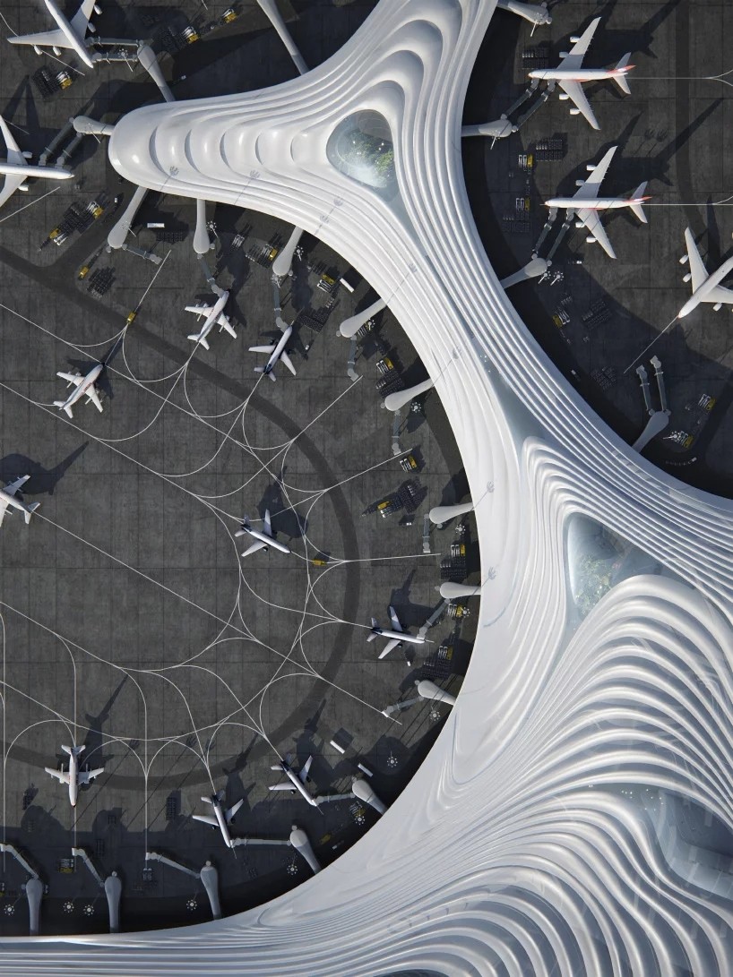 MAD的設計避免出現傳統航站樓的尺度過大、用者不便利的缺點,創(chuàng)造了貼近人體尺度、“有溫度”的宜人氛圍,同時實現綠色節(jié)能的目標。擁有89個近機位的T3呈雪花形五指廊狀,大大縮短了旅客步向登機口的時間;中心港灣多條滑行通道的設計有效提高機位使用率。