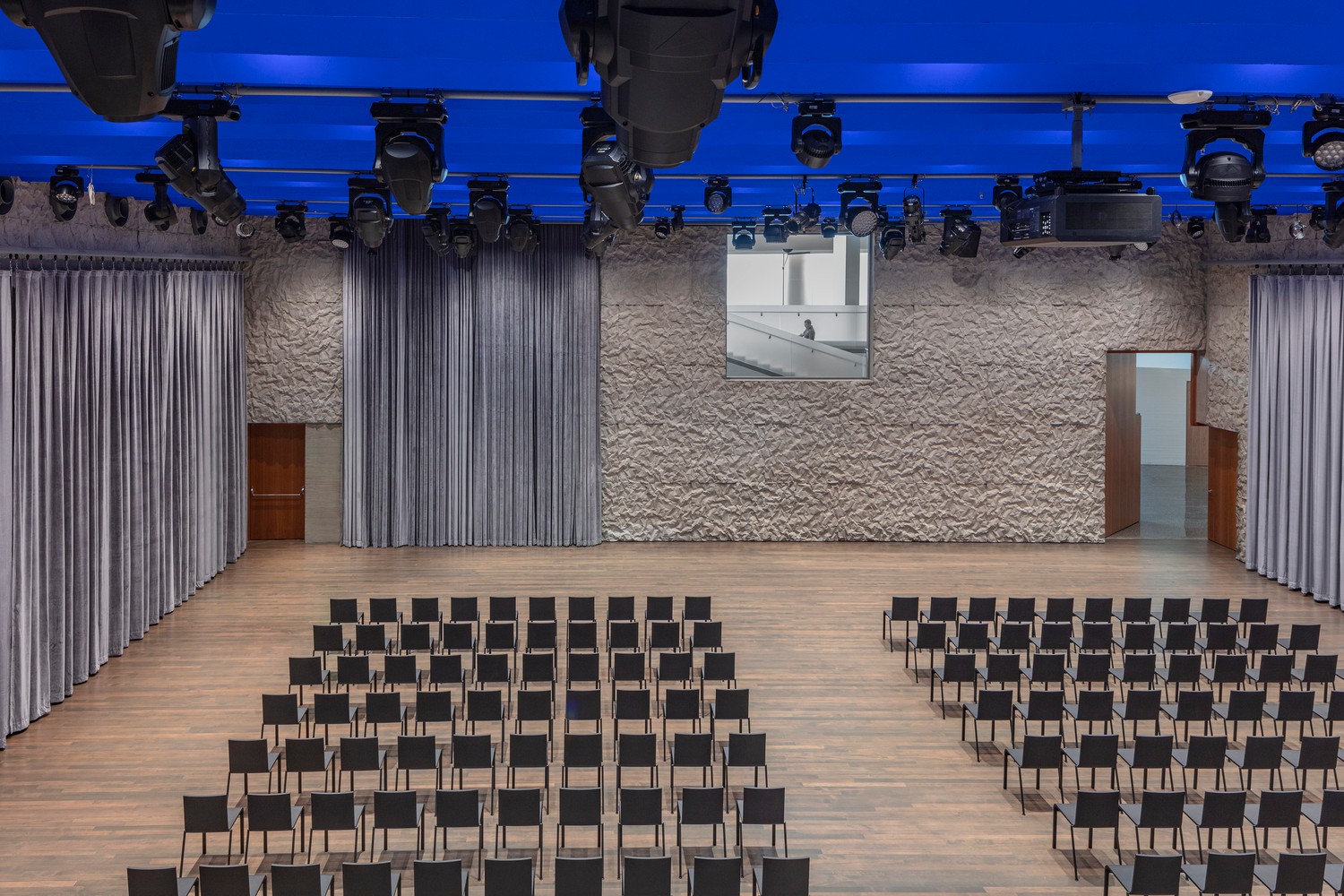 設(shè)計(jì)團(tuán)隊(duì)用創(chuàng)新理念保留了現(xiàn)有建筑的輪廓,并增加了排練室和教室、演講廳、多功能會(huì)議室和活動(dòng)空間。擴(kuò)建地塊位于現(xiàn)有場(chǎng)地的南面,內(nèi)部空間設(shè)有高聳的天花板,充滿自然光線。