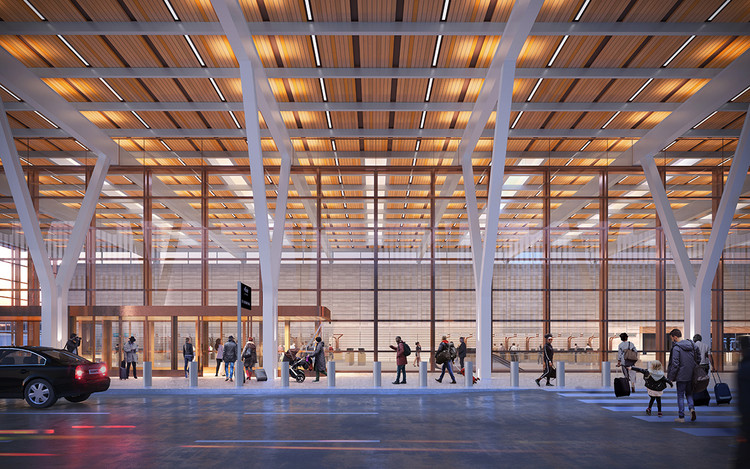 該設計目標為在緊湊的布局中實現(xiàn)功能的無縫銜接。步行距離將保持在最少,登機手續(xù)辦理處和安檢處被合并為一個空間。雙層道路將到達和離開的車輛交通進行了分隔。該設計入口處巨大的伸出部分進行了柱子和玻璃幕墻的結(jié)構(gòu)性表達。新航站樓的目標是通過LEED?金級認證。