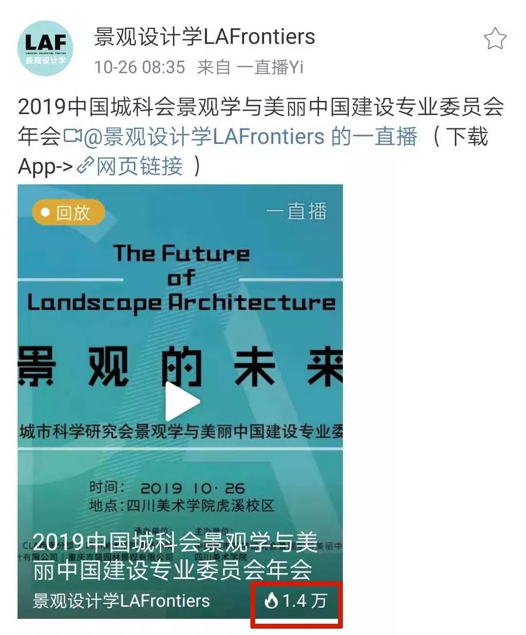 《景觀設(shè)計(jì)學(xué)》期刊及筑龍網(wǎng)對本次大會進(jìn)行了直播,當(dāng)日直播視頻瀏覽量累計(jì)約兩萬人次,圖片瀏覽量約三萬人次。
