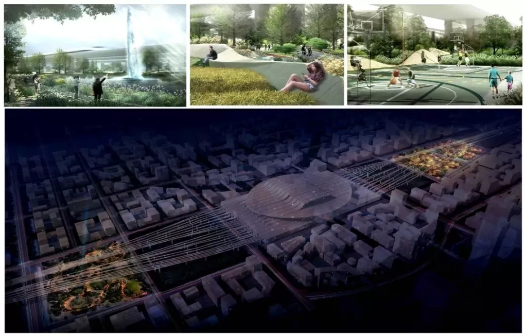 設(shè)計秉持站城一體的理念,綠地連通站場和城市空間,構(gòu)建一個符合邏輯的整體。遵循TOD綠地模式,功能混合、服務(wù)多元對象。