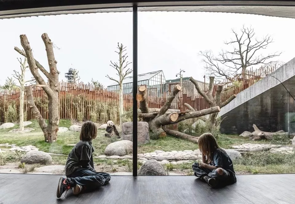 熊貓館整體被自然環(huán)境包圍,毗鄰動物園的中央廣場、北歐館、猴子屋和大象館。毛二和星二的圓形小屋被分成兩個部分,其形式呼應(yīng)了“陰”和“陽”的符號,旨在為它們的日常生活和彼此之間的關(guān)系創(chuàng)造最自由、最自然的環(huán)境。
