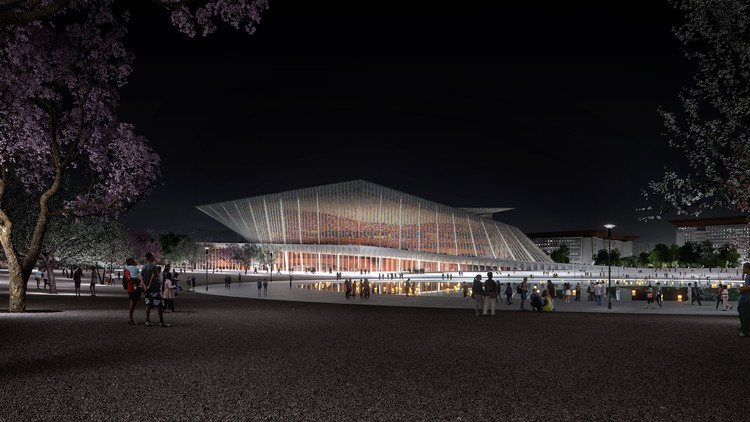 關(guān)于建筑物的設(shè)計,Sn?hetta建筑事務(wù)所表示“旨在在劇院長曲的廣場,閃爍的立面和高聳的中庭之間取得概念上的平衡”。該大劇院的目的是作為表演和自發(fā)活動的場所。事實上,該項目設(shè)想了不同的集聚區(qū),人們可以在那里見面,例如可以用于野餐聚會和家庭活動的圓形室外空間,可以自發(fā)即興練習(xí)的室外露天劇場,以及俯瞰公園的中點平臺。