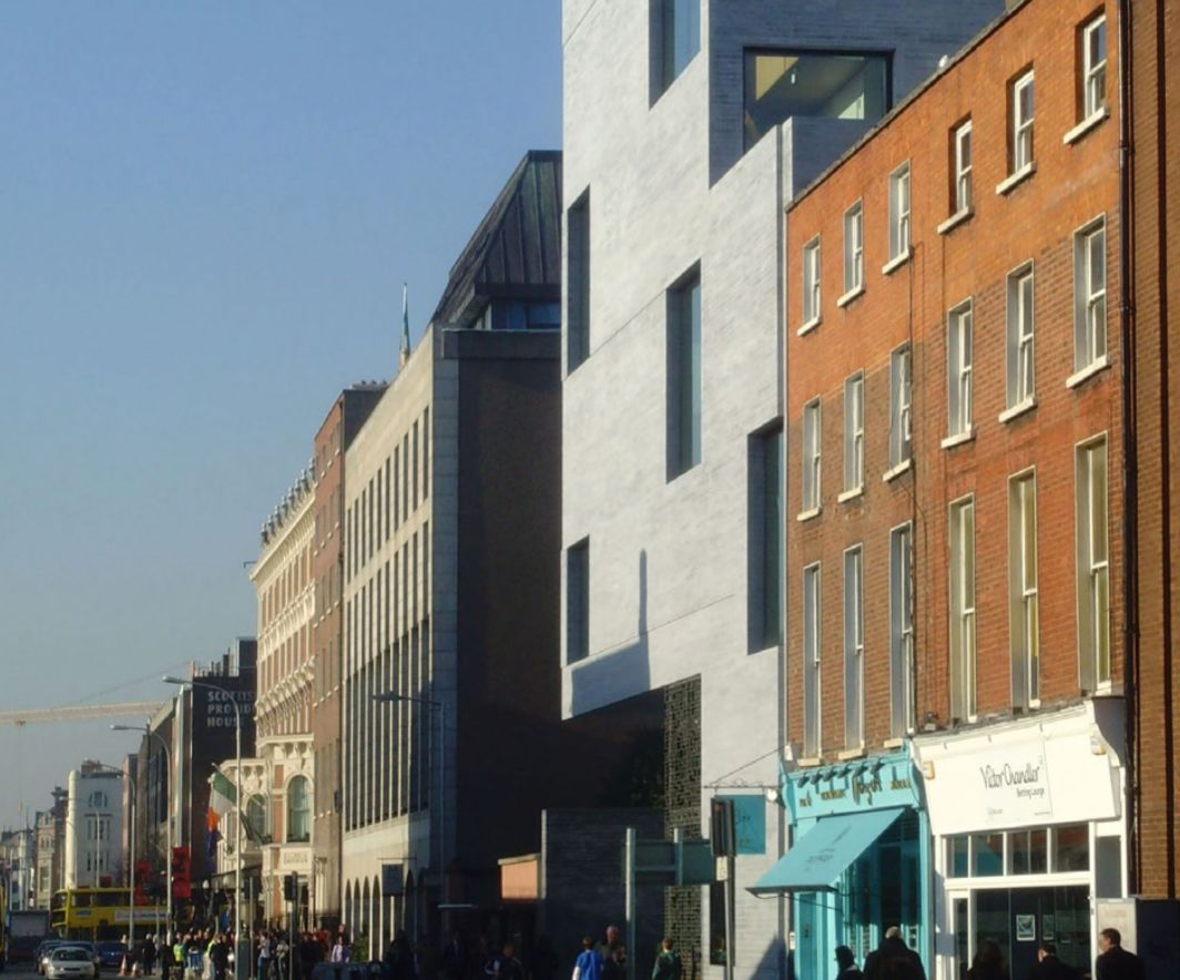 “新建筑遵從都柏林的一種建筑傳統(tǒng),在這里,重要建筑與整個(gè)城市街景的交界處都達(dá)成一種大小比例上的顯著轉(zhuǎn)換?!?/section>