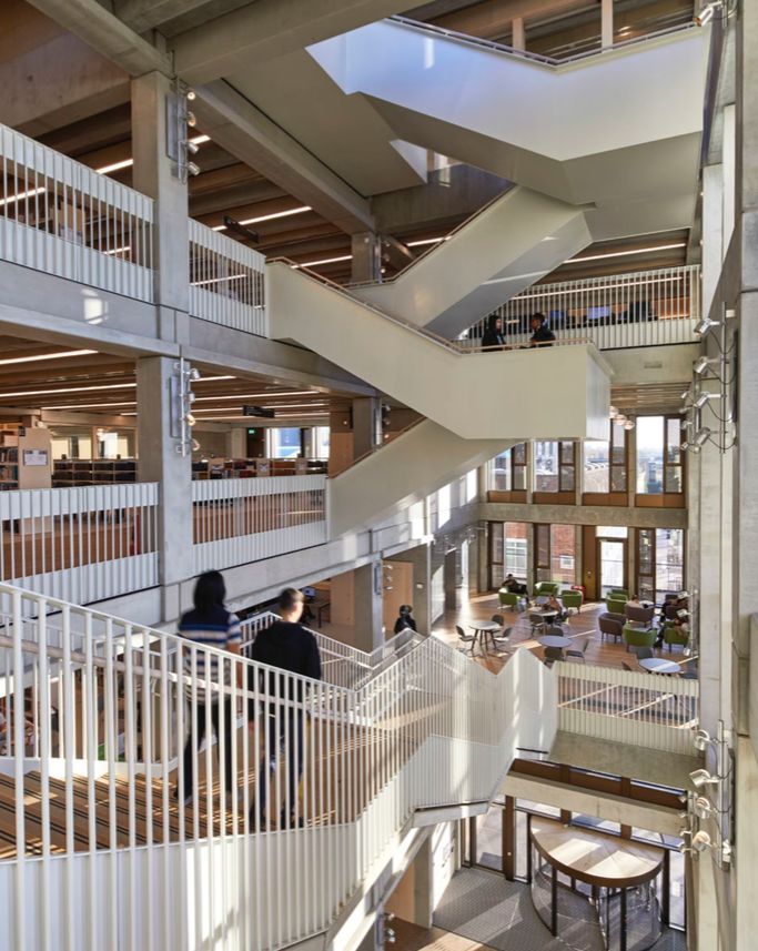 坐擁一處完整的城市街區(qū),建筑師們以縱向取代橫向,打造出一個(gè)感覺更像是由樓閣庭院組成的校園,寬敞多樣的開放空間引發(fā)更多自然發(fā)生的相遇與交流,建筑從內(nèi)部營造出一種社區(qū)的感覺,輕松自在地置身于所處的城市之中。
