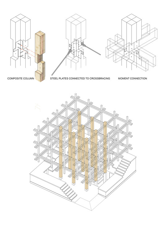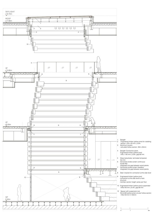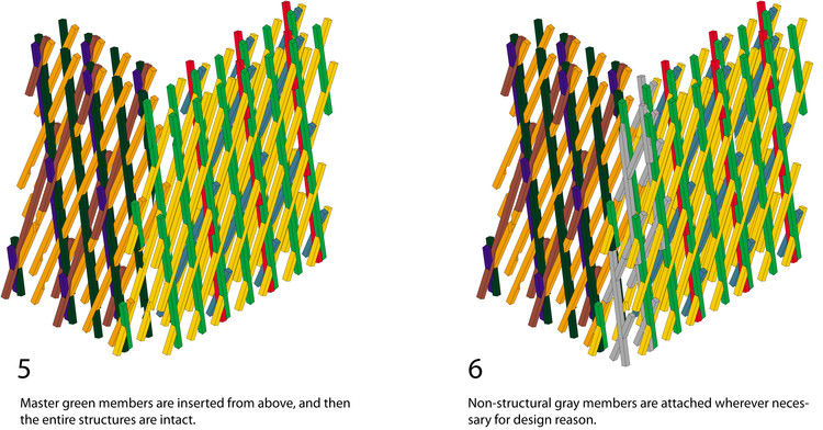 同時,隈研吾也因其在木結構的設計創(chuàng)新上,而飽受國際贊譽。他往往會基于一個簡單的結構樣式,通過不同角度的交差和旋轉(zhuǎn),以創(chuàng)造一個全新的復雜結構。這一點,在其團隊教科書式的軸側(cè)圖繪制和復雜的參數(shù)化圖紙制作上,都有著充分而又詳細的展示與呈現(xiàn)。因此,我們在下文收集了隈研吾建築都市設計事務所的五個木結構項目,旨在為大家提供靈感與參考。