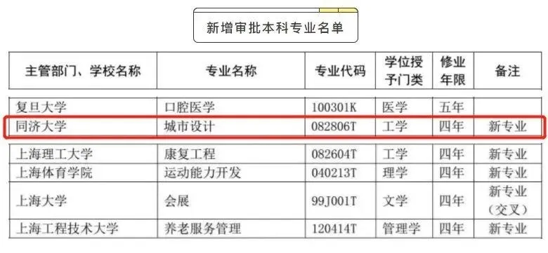 同濟(jì)大學(xué)開設(shè)“城市設(shè)計(jì)”四年制本科專業(yè)