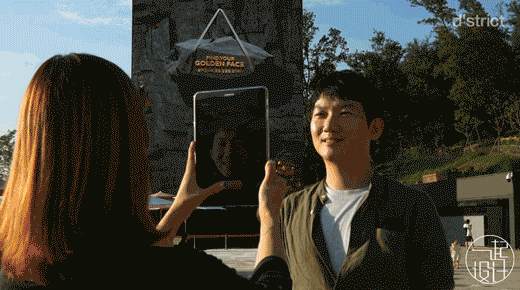 ▲ 利用 MOBILE AR 技術(shù),對(duì)游客進(jìn)行 3D 臉部掃描識(shí)別,在身后的“洞窟”中顯現(xiàn)出來