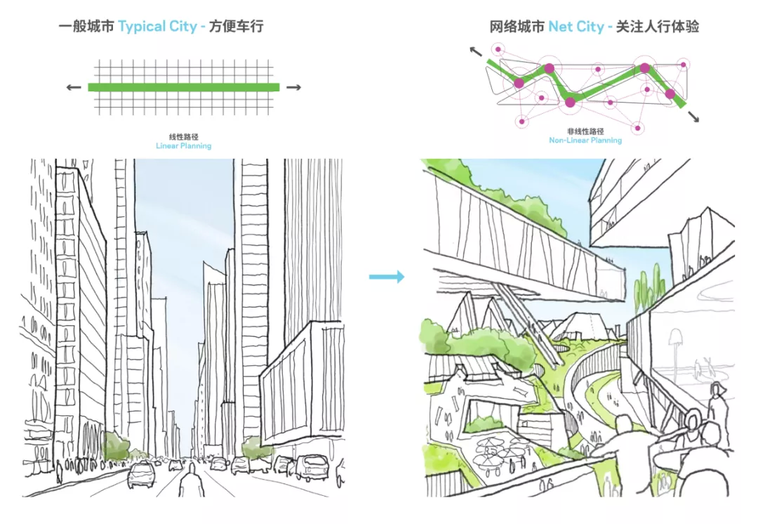 “典型的現(xiàn)代城市要求對城市功能進(jìn)行簡單而有效的分區(qū),以嚴(yán)格控制一切并促進(jìn)貨物、汽車和人員的流動(dòng)。這一原則是由工程時(shí)代和對工業(yè)時(shí)代機(jī)器的熱愛所驅(qū)動(dòng)的。”NBBJ設(shè)計(jì)合伙人Jonathan Ward說道, “但在當(dāng)前的計(jì)算機(jī)時(shí)代,沒有必要堅(jiān)持這樣的限制?!?nbsp;