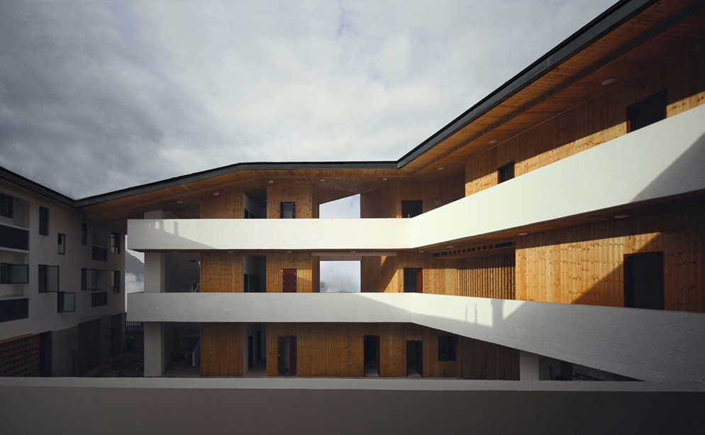院落的回廊順應(yīng)地域性氣候,在最大化景觀視線的同時,結(jié)合當?shù)鼐用駥ぷ髋c生活的使用需求,形成一個相對內(nèi)聚的院落空間。