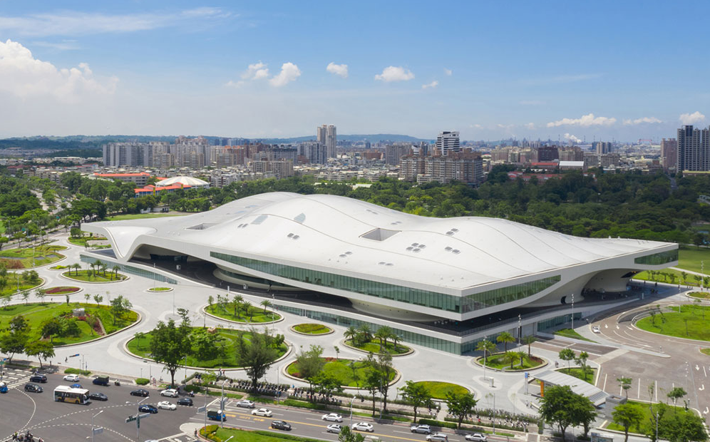 劇院設(shè)計與傳統(tǒng)建筑形式不同,它借鑒了太極文化的特點,創(chuàng)造了一個靈活而簡單的圓形屋頂,同時展現(xiàn)了力量和溫柔。起伏的屋頂在兩側(cè)圍繞著中心建筑,并存有一定的裝飾性。