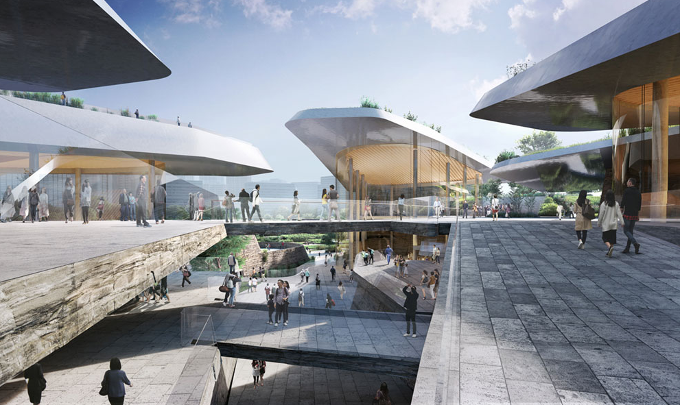 杭州的這個會展中心的設(shè)計,拋棄了刻意的造型與所謂的儀式感傳統(tǒng)造型,取而代之的是輕盈簡潔的形體、模糊的邊界、以及可供任何人自由進出的完全開放的空間。自由、平等、輕松、開放的場所體驗如同小鎮(zhèn)氛圍的縮影,使所有來到這里的使用者都能夠獲得一種歸屬感與愉悅感。