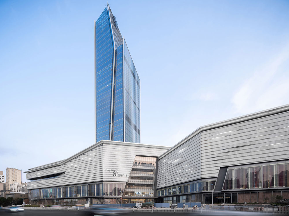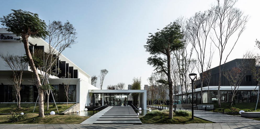 該項目位于天津,地理位置靠海,原先是一個天津造船廠,出于對歷史的深刻記憶與對原建筑造船廠的尊重,設(shè)計師以船在海面上行駛的概念來做設(shè)計,并選用了靈動而優(yōu)雅的線條來描繪建筑輪廓。