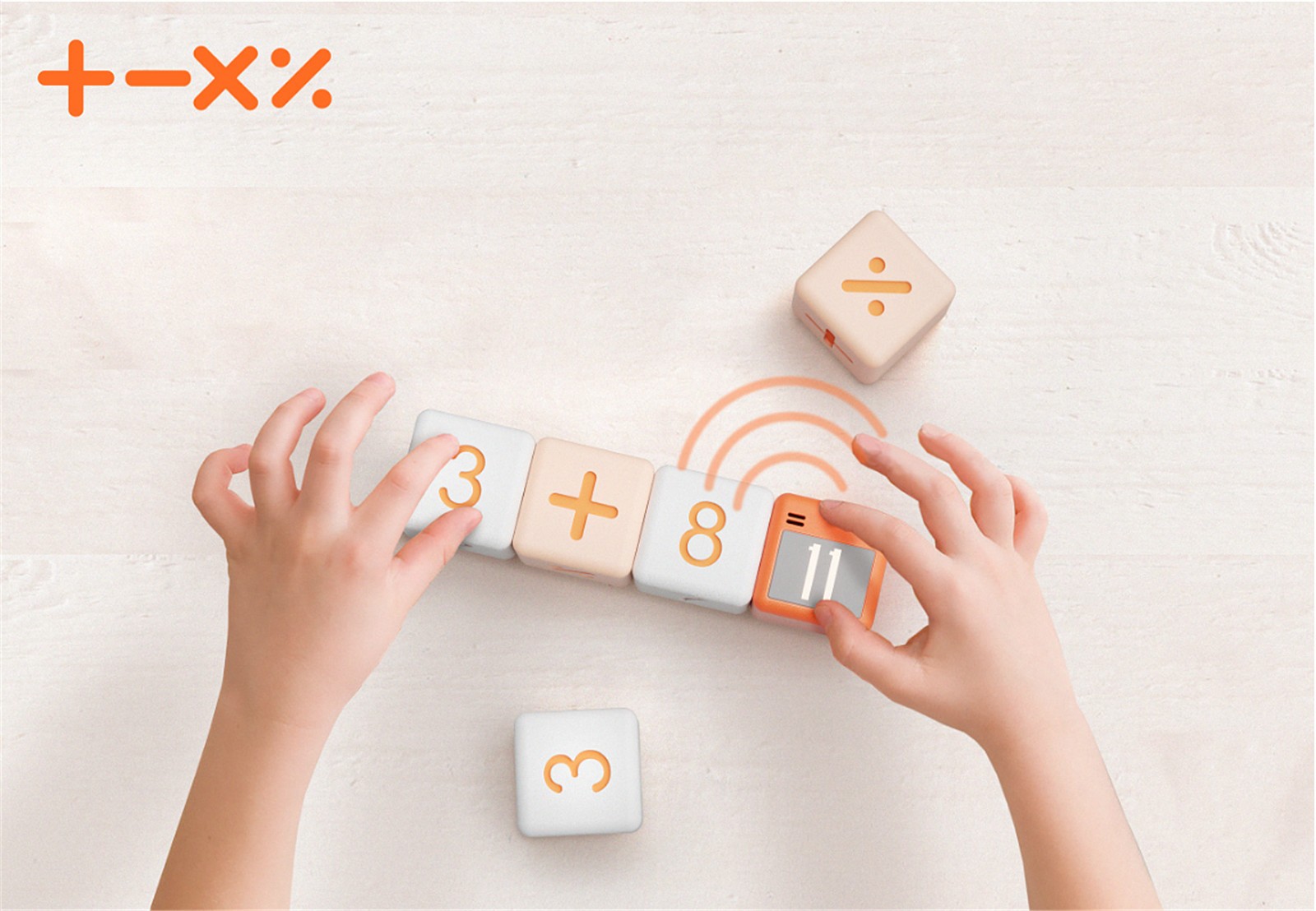 積算是一款擁有“加減乘除”算法的模塊化玩具。當(dāng)一組模塊正確貼近時(shí),顯示模塊會(huì)顯示相應(yīng)算法的答案,并且播放答案的提示音。通過增加模塊數(shù)量可以調(diào)整計(jì)算的難度。