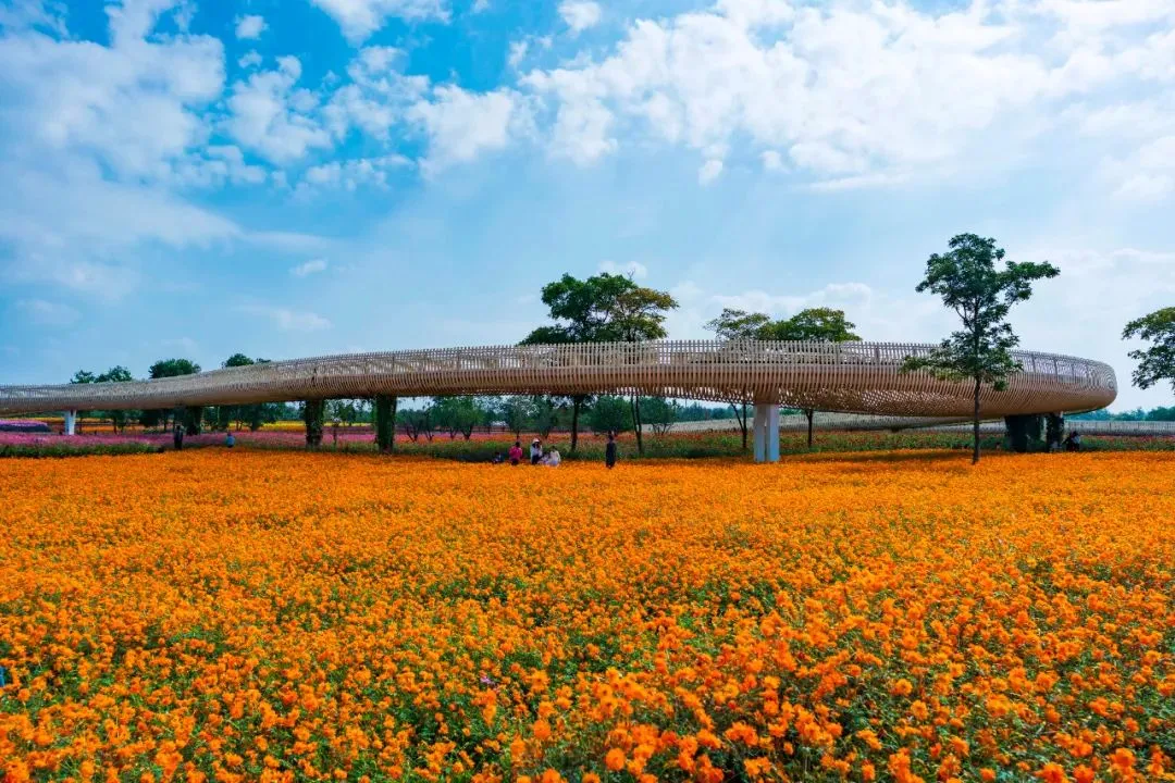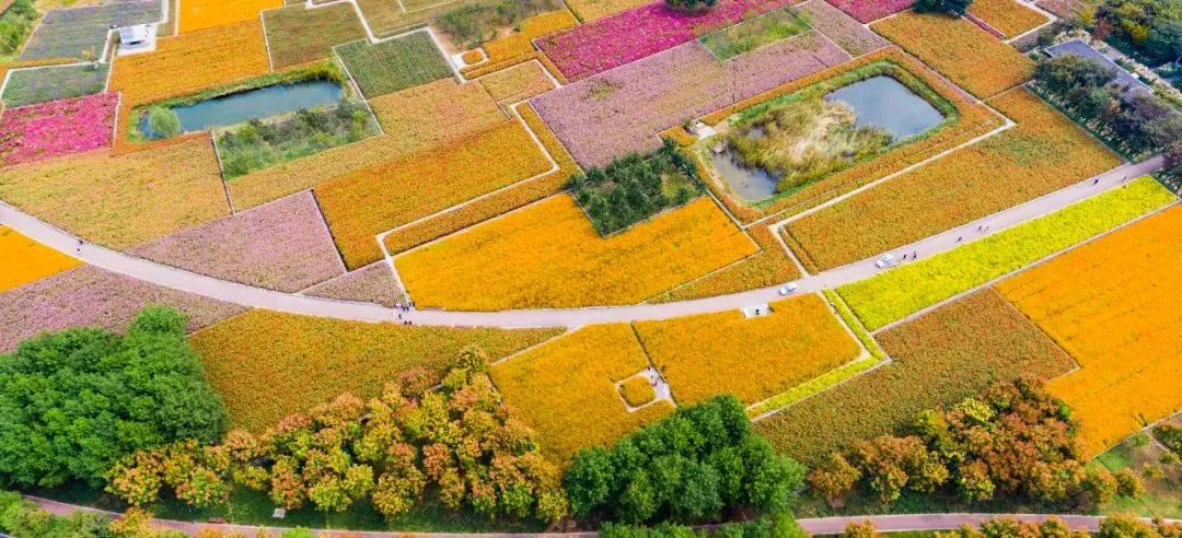 -↑“衲田”花海被設(shè)計(jì)為一年四季色彩和紋理都不斷變化的動態(tài)拼貼畫,