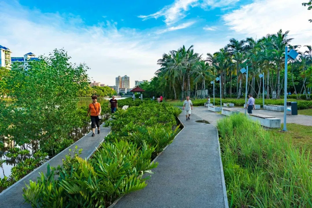 慢行步道、特色親水景觀設(shè)計(jì)在滿足市民休閑需求的同時(shí),更展示了??诰坝^特色,塑造了城市綜合型生態(tài)濕地公園。