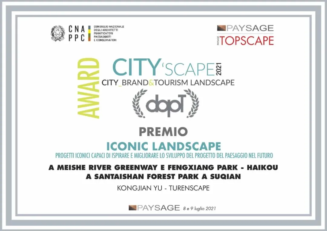 2021年7月9日,國際知名競賽“CITY’SCAPE City_Brand&Tourism Landscape Award”于米蘭宣布了獲獎名單。本次競賽共收到來自世界各地的1700個(gè)項(xiàng)目,評委會從中嚴(yán)格篩選,聚焦于景觀、建筑等領(lǐng)域中最好的實(shí)踐項(xiàng)目。