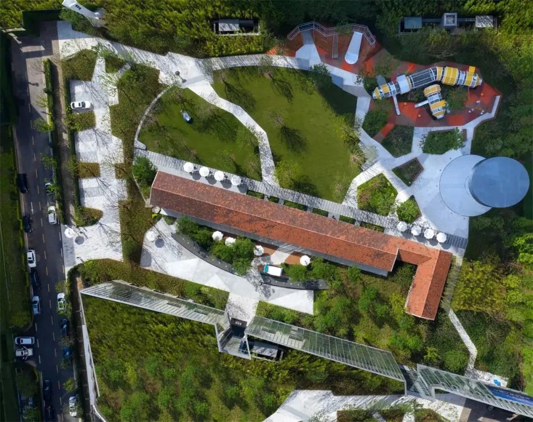 文保建筑是場(chǎng)地中重要的組成部分,但它同時(shí)也導(dǎo)致整個(gè)場(chǎng)地空間被分割。張?zhí)朴靡粋€(gè)蛋殼圓將場(chǎng)地節(jié)點(diǎn)串聯(lián)起來,同時(shí)又通過與文保建筑的組合將場(chǎng)地功能空間合理區(qū)分,保留文化的厚重感的同時(shí)創(chuàng)造了公共空間的活力感?;?dòng)噴泉、兒童無動(dòng)力設(shè)施、景觀步道等設(shè)施將歷史與現(xiàn)代交織融合,文保的文脈與場(chǎng)地活力在此刻被重新激活定義。(馮康泰撰)