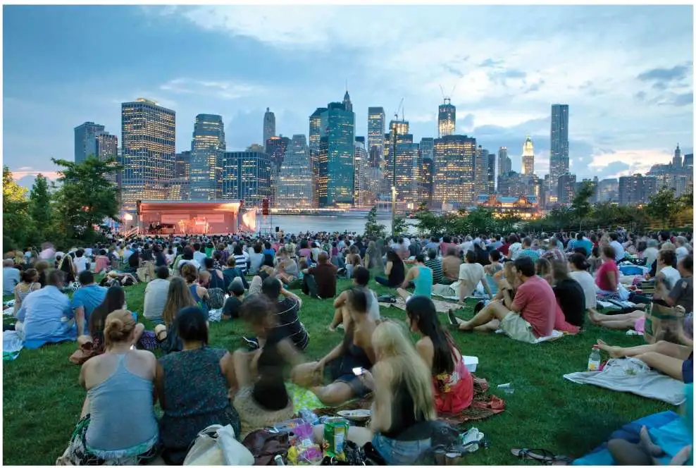 布魯克林大橋公園歷經(jīng)20余年的設(shè)計(jì)和建造,形成了延紐約東河占地85英畝,長約1.3英里的河濱空間。該項(xiàng)目將冰冷生硬的工業(yè)遺跡轉(zhuǎn)變成為了生機(jī)勃勃的公共空間。2019年,約5百萬人參觀了該公園,體驗(yàn)了其響應(yīng)式的規(guī)劃,壯觀的風(fēng)景和具有韌性的設(shè)計(jì)和建造。今天,公園中的設(shè)計(jì)元素改善了公眾與河濱的聯(lián)系,使廢棄的港口重獲新生并且重新建立了生態(tài)多樣性。布魯克林大橋公園模糊了東河和公園之間的邊界,為改造城市市政河濱景觀樹立了新的典范。