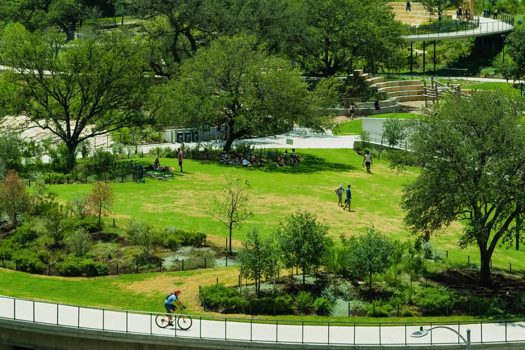 該項目由今年斬獲多項大獎的MVVA事務所聯(lián)手德克薩斯新銳工作室dwg共同設計,為修復奧斯汀市Waller Creek的整體計劃的一項階段性成果。設計以建立并且守衛(wèi)健康的生態(tài)和具有韌性的河岸走廊為中心元素,驅動公園的發(fā)展并且將市民與自然連接起來,致力培養(yǎng)下一代環(huán)境守護者。除此以外,設計還意在促進該空間的社會包容性,將奧斯汀聚合在一起,為未來創(chuàng)造積極的改變。