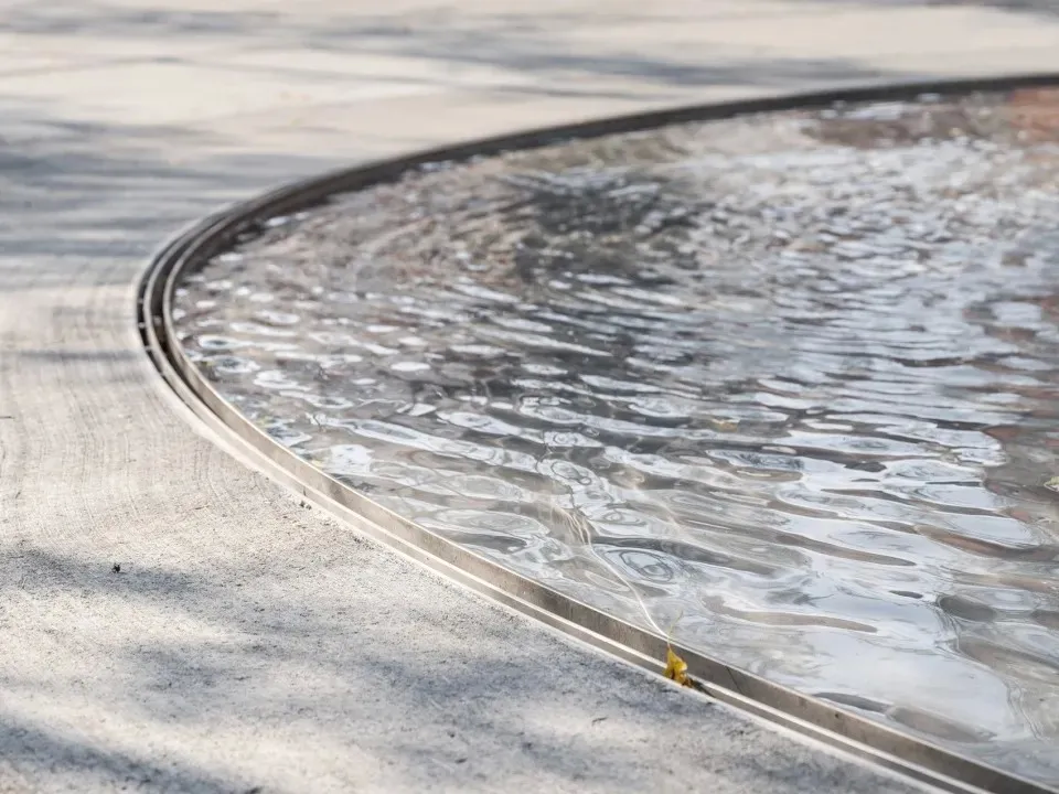 近日BIG發(fā)布了最新景觀設計作品亨寧·G·克魯斯廣場(Henning G. Kruses Plads)。廣場位于丹麥埃斯比約音樂廳與藝術博物館前院,設計師希望在景觀中融入建筑、音樂和海洋的元素。廣場中央設有一個直徑10米的音流水池,隨著音樂或是預編程的震動波光粼粼。圍繞著水池,行列種植著一片樺樹林,與室內(nèi)的石柱相融相生,形成建筑向自然的過渡。