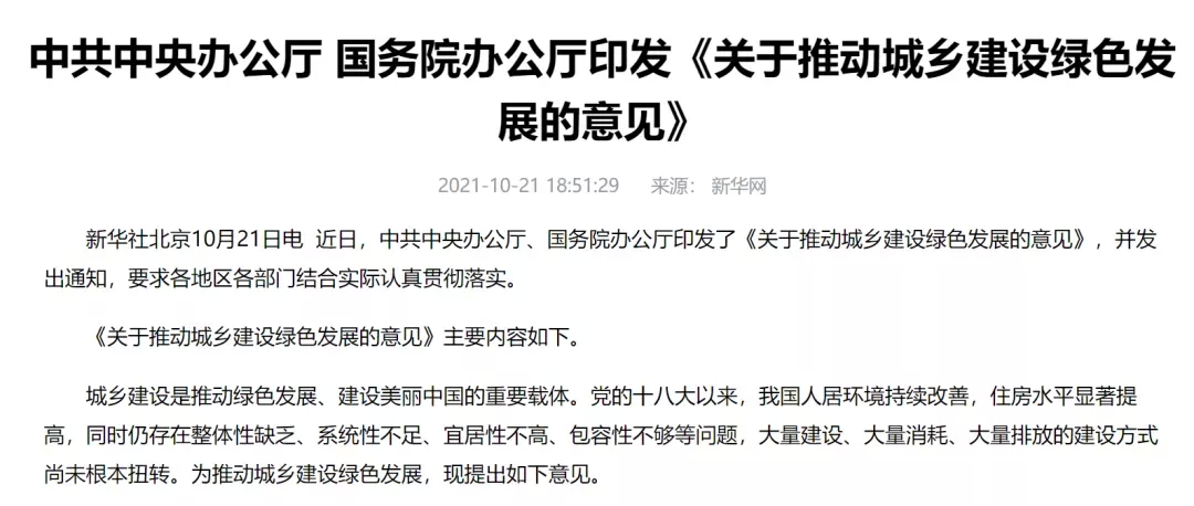 近日,中共中央辦公廳、國務院辦公廳印發(fā)了《關于推動城鄉(xiāng)建設綠色發(fā)展的意見》(后簡稱《意見》),旨在促進城鄉(xiāng)發(fā)展的全面綠色轉型,推動構建人與自然生命共同體?!兑庖姟窂娬{應從合理化城市布局、韌性的生態(tài)保護、完善的公共設施和城鎮(zhèn)建設層級四方面,推進城鄉(xiāng)建設到2035年全面實現(xiàn)綠色發(fā)展、品質提升、現(xiàn)代化治理,基本實現(xiàn)美麗中國建設目標。
