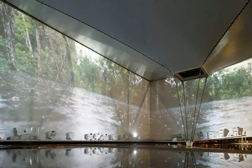 近日,迪拜世博會(huì)巴西館正式對(duì)外開(kāi)放,該建筑由JPG.ARQ、MMBB Arquitetos和Ben-Avid共同設(shè)計(jì),占地面積近4000平方米,為來(lái)訪者帶來(lái)有關(guān)巴西生物群落和文化遺產(chǎn)的豐富感官體驗(yàn)。展館架于一汪淺水池上,四周的輕質(zhì)半透明薄膜照應(yīng)著投影,共同組成沉浸式體驗(yàn)。而腳下的水都源自過(guò)濾的雨水與回收用水。此外,建筑自動(dòng)化管理操作也極大地減小了能源消耗,讓這座展館更好的棲居于沙漠中。
