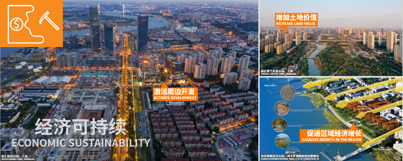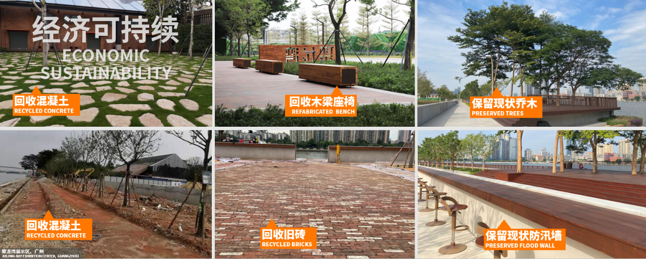 經(jīng)濟(jì)因素包含降低建造成本和促進(jìn)周邊及區(qū)域的經(jīng)濟(jì)增長。廣州聚龍灣項目通過重新利用建筑材料和保留現(xiàn)狀植物,節(jié)約的成本占景觀總造價11.8%??沙掷m(xù)設(shè)計是一個系統(tǒng)工程,它所帶來的諸多價值是無法被量化的。