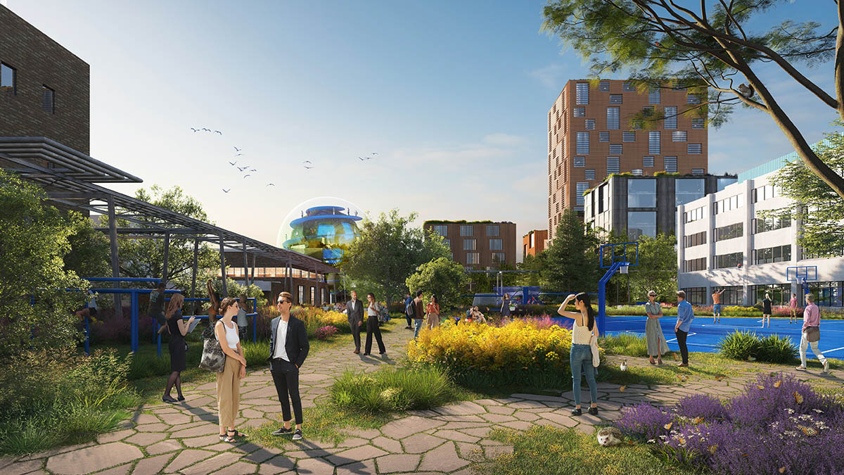 4月11日,MVRDV公布了位于荷蘭東部城市奈梅亨(Nijmegen)的Noviotech校園擴建總體規(guī)劃方案。本次規(guī)劃將重新梳理建筑布局,以生態(tài)優(yōu)先的理念將場地與周邊城市用地銜接,以“超級混合”(hyper-mix)的景觀策略種植大量喬灌木和花卉。設(shè)計團隊將“百萬點景觀”(landscape of a million dots)穿插在校園生態(tài)環(huán)境中,并在建筑立面和屋頂種植大量綠色植物,強化生態(tài)基礎(chǔ)設(shè)施建設(shè)。
