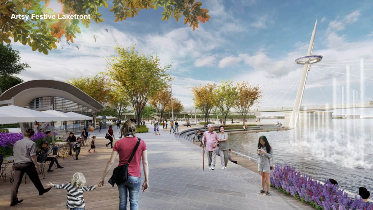 由于湖周圍已有較為老舊的公園,因此本次設計增設眾多公共項目、更新公共設施,將廢棄酒店改為青年中心,并新建地下停車場等。同時,設計最大限度地保護了本土樹木,以減少樹木移植率。為減少碳排放含量,設計大幅度增加湖區(qū)周圍生態(tài)緩沖區(qū)的面積,新建的濕地和浮島有效改善了水質,為水禽和兩棲動物創(chuàng)造了新的棲息地。