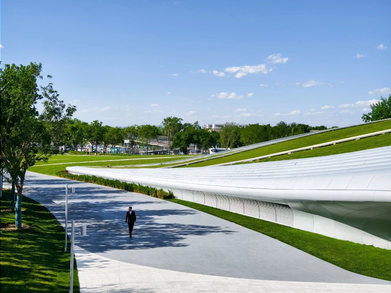 日前,北京中關(guān)村國際創(chuàng)新中心(原“中關(guān)村論壇永久會址”)建成細節(jié)公布。該項目屬于北京市“3個100”重點工程,位于海淀區(qū)核心區(qū)域,占地5.9hm2,其建筑設(shè)計部分由MAD設(shè)計事務(wù)所負責(zé)、景觀設(shè)計部分由山水比德負責(zé)。作為串聯(lián)周圍綠地的重要一環(huán),項目既是西山“山水骨架”的延續(xù),也是織補區(qū)域綠色廊道的重要部分。設(shè)計提出“復(fù)合功能的綠色之丘”的設(shè)計概念,基于區(qū)域降水特征進行雨水管理設(shè)計,以保證區(qū)域水文系統(tǒng)的健康發(fā)展。與此同時,設(shè)計融合了中國傳統(tǒng)園林意象與科技創(chuàng)新的都市形象,將國家級會議中心與市民公園綠地進行整合,打造集生態(tài)、文化、科技、社會等復(fù)合功能于一身的公共空間。