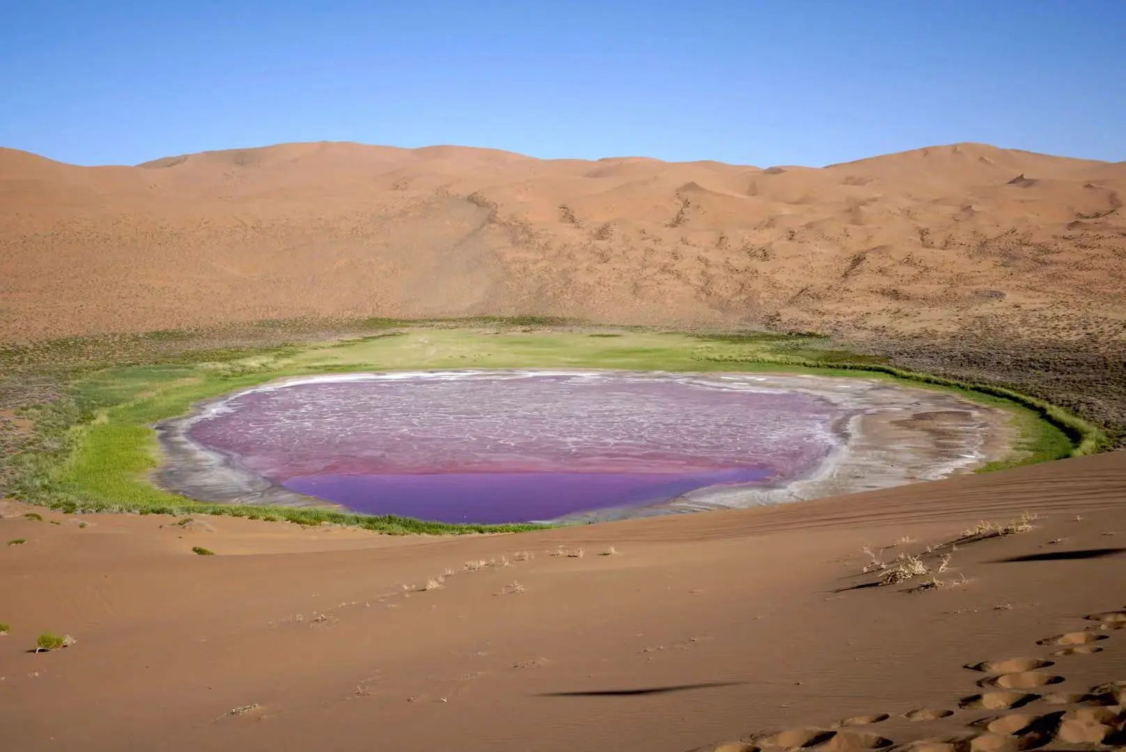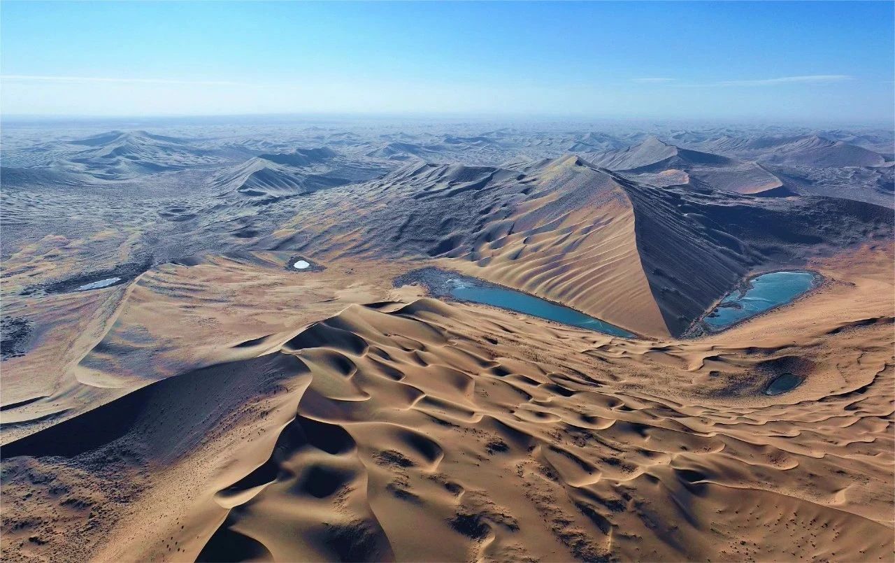 巴丹吉林沙漠地處阿拉善高原,屬中國西北極干旱的溫帶荒漠地區(qū),是中國第三大沙漠和第二大流動沙漠。其重要標(biāo)志包括世界最高的固定沙山(相對高度達(dá)460m)、最密集的沙漠湖泊、最廣闊的鳴沙區(qū)域,以及多樣的風(fēng)蝕地貌,展現(xiàn)了非凡的自然美學(xué)價值。