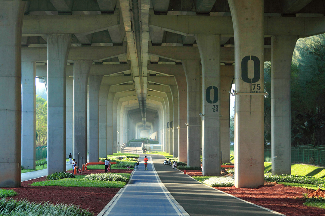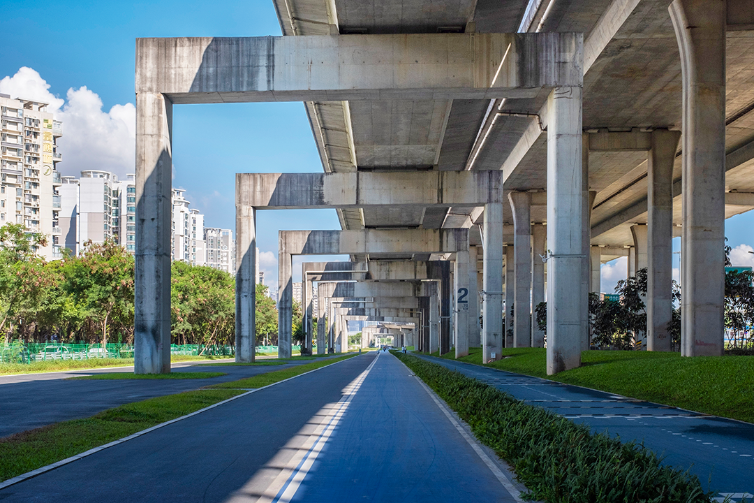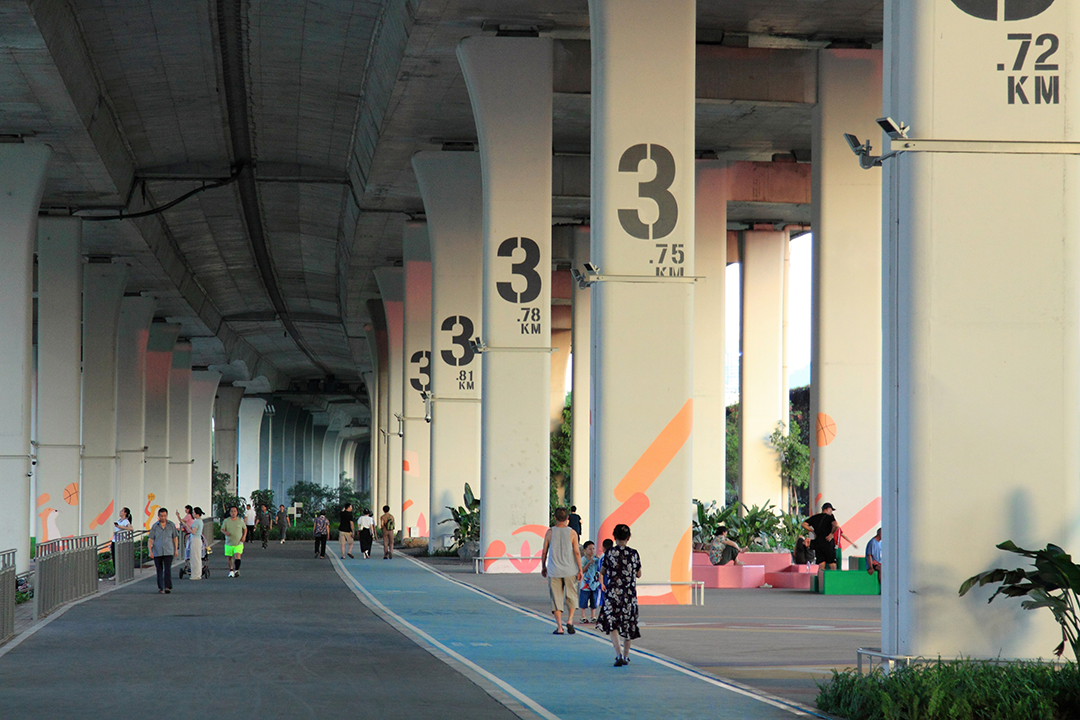 8月3日,深圳朗程師地域規(guī)劃設(shè)計(jì)公司的新作——廣東省深圳市西灣-前海灣慢行公共空間項(xiàng)目建成細(xì)節(jié)公布。項(xiàng)目全長(zhǎng)約6km,用地面積44h㎡,起止點(diǎn)分別位于深圳市西部的西灣和前海灣海域,串聯(lián)平巒山-西灣公園群、前海公園群和西鄉(xiāng)河水廊道,是深圳“山海連城”濱海藍(lán)帶的重要節(jié)點(diǎn)。項(xiàng)目原為S3廣深沿江高速公路高架橋下的配套附屬用地,在高速公路建設(shè)時(shí)布設(shè)了大量的城市基建和管網(wǎng)設(shè)施,禁止市民進(jìn)入,導(dǎo)致橋下空間資源閑置,成為城市中的“失落空間”。