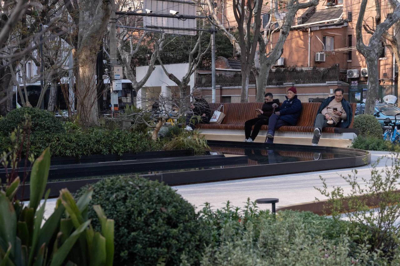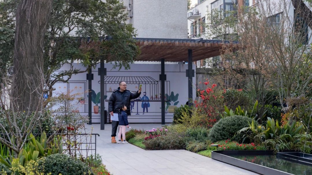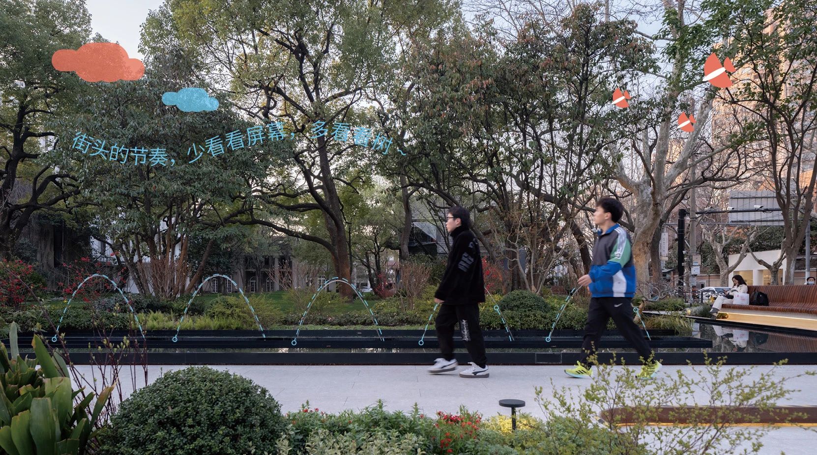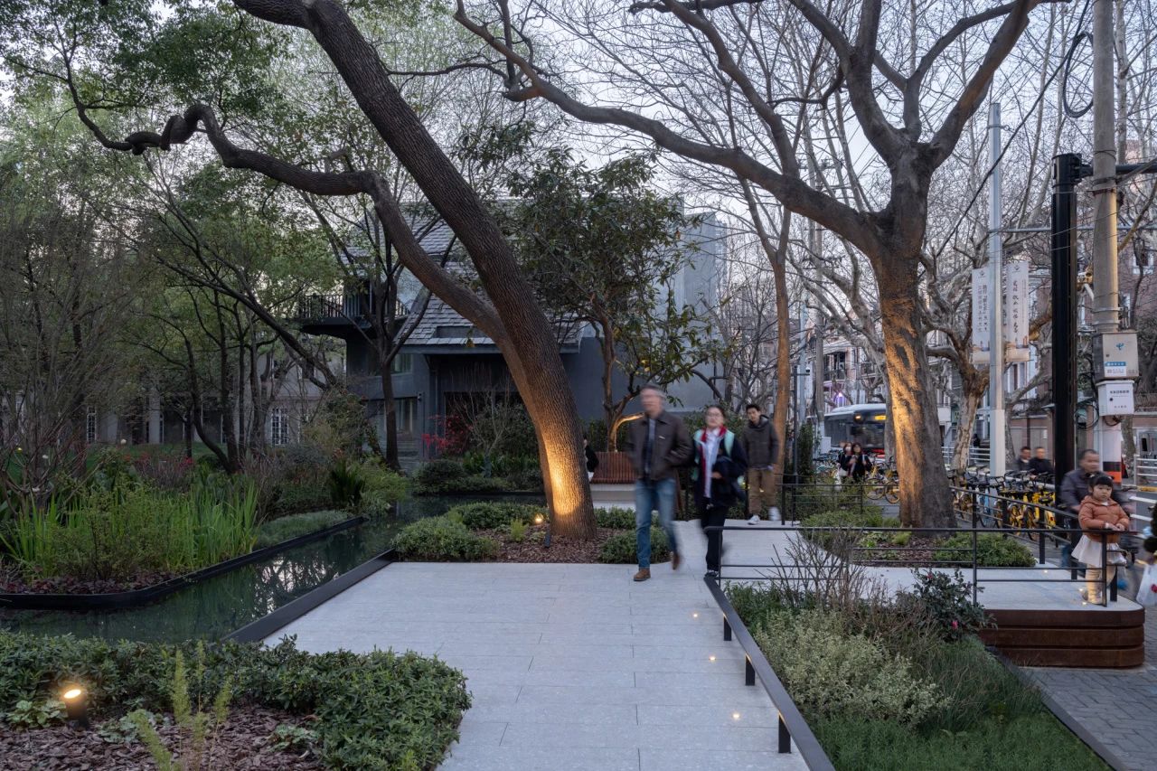 本次改造旨在重塑花園的文化底蘊,為市民提供一個都市中靜謐的公共景觀空間。設計團隊以“辭書文脈”為設計出發(fā)點,通過拆除圍墻,模糊綠地與街區(qū)之間的界限,形成開放的空間格局。在街區(qū)改造方面,設計基于原有邊界范圍進行了空間的整合更新,通過運用光影、材料、色彩與植物的不同組合,改善了居民的步行體驗。此外,設計打造了獨特的主題水景和不同層次的樹池,巧妙處理了場地原有的高差,沿街步道、座椅、廊架等景觀設施為居民提供了便捷、舒適的閱讀場所。與此同時,綠地也成為了舉辦書展、講座、藝術展覽等臨時性文化活動的場所,豐富了附近居民的精神文化生活。