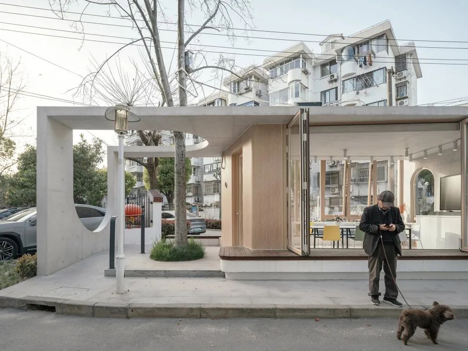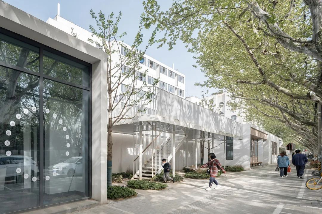 設(shè)計團(tuán)隊在滬東新村博興路-柳埠路沿線開展?jié)u進(jìn)式系列城市更新實(shí)驗(yàn),依次設(shè)定空間原型、建立空間模式、設(shè)定設(shè)計要素特征,進(jìn)而響應(yīng)環(huán)境的“空間意象轉(zhuǎn)譯”、有機(jī)嵌入公共生活,為社區(qū)沿街界面的有機(jī)更新探索出一條自下而上的實(shí)踐方法及路徑。設(shè)計陸續(xù)完成了“向東暖亭”“博興路游廊”“博三樹屋”“博三折門”等8處小微空間的營造。其創(chuàng)新的結(jié)構(gòu)設(shè)計為當(dāng)?shù)鼐用裉峁┝烁暾目臻g體驗(yàn),在小尺度中形成溫暖的公共生活氛圍。設(shè)計在滿足社區(qū)活動室、社區(qū)食堂、小區(qū)門衛(wèi)等具體功能需求的同時,在每個小微空間中設(shè)立了“虛實(shí)”關(guān)系,其中“實(shí)”空間提供公共服務(wù),“虛”空間則引導(dǎo)戶外交往。例如,設(shè)計將公共客廳、共享游戲空間等功能布置在全開放的“虛”空間中,將安保管理、信息發(fā)布、愛心互助、微型消防站等功能融合在“實(shí)”空間中。此外,設(shè)計利用居民原先在場地角落中密集種植的30余株橘樹優(yōu)化空間布局,實(shí)現(xiàn)社區(qū)花園的全過程共建。