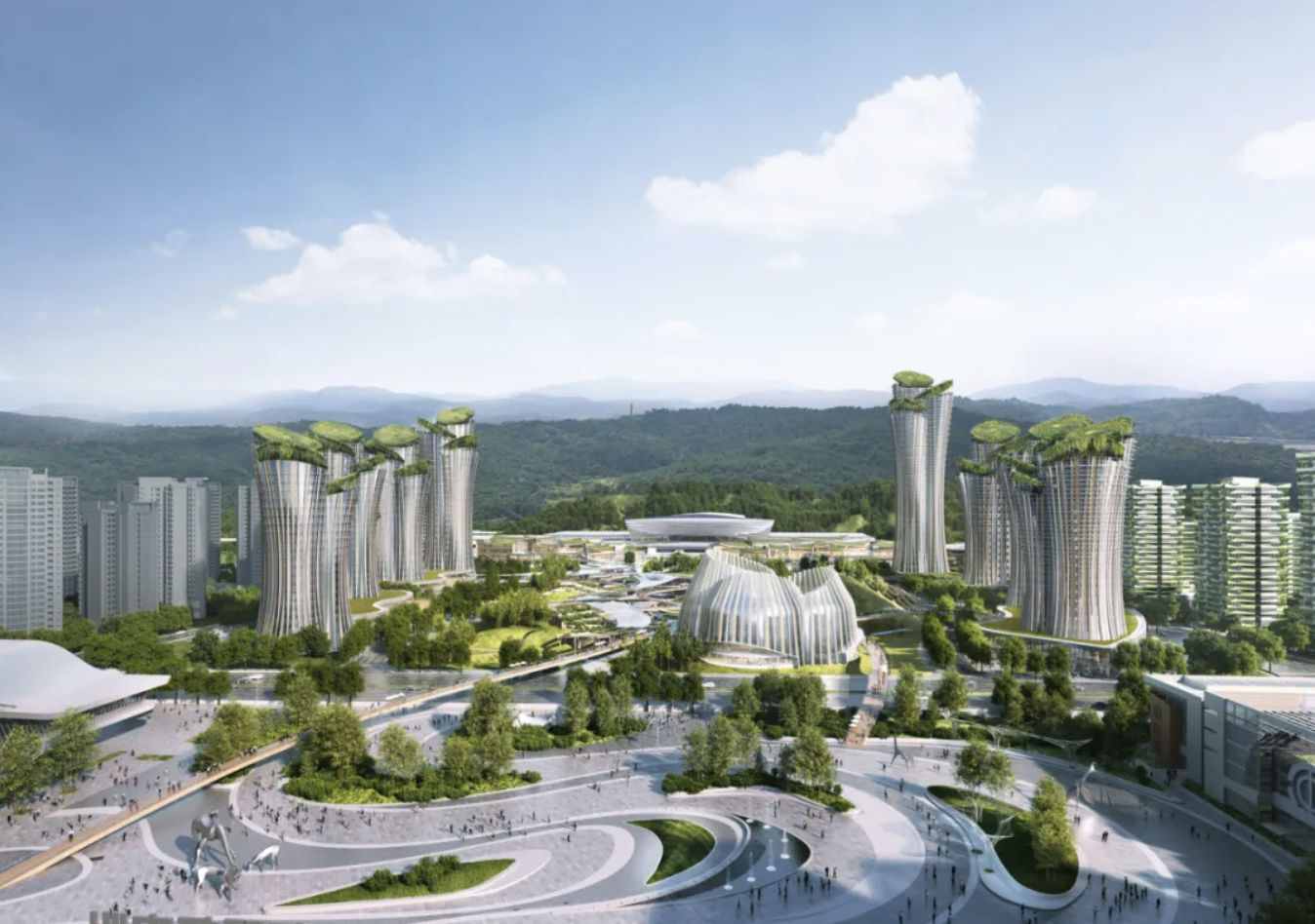 8月25日,Pelli Clarke & Partners攜手四川省建筑設(shè)計(jì)研究院贏得新宜賓車站門戶開(kāi)發(fā)綜合總體規(guī)劃國(guó)際設(shè)計(jì)競(jìng)賽。項(xiàng)目位于四川省宜賓市,兩條高鐵線路將在此交匯,促進(jìn)宜賓蛻變?yōu)橹袊?guó)西部四大城市中心的交通樞紐。設(shè)計(jì)以“竹頌”為核心主題打造中央公園,致敬宜賓的竹林文化,并將公園的設(shè)計(jì)巧妙地融入了宜賓獨(dú)特的地形結(jié)構(gòu)。