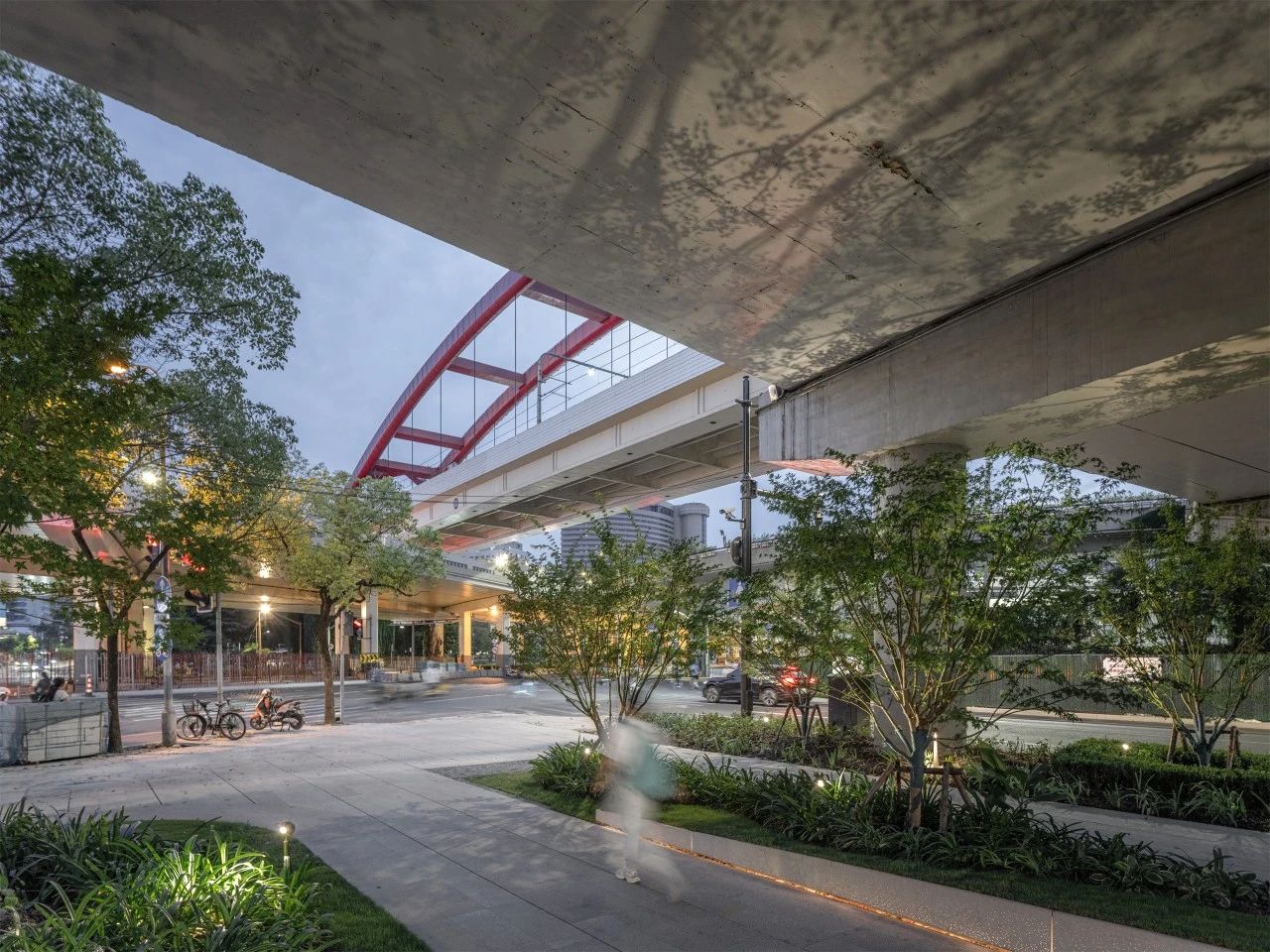 日前,VIA維亞景觀公布新作——上海市漕溪路口袋公園建成細(xì)節(jié)。項(xiàng)目位于交通繁忙的漕溪路和凱旋南路交叉口的東南角,占地約6300m2。場(chǎng)地原為環(huán)境品質(zhì)較差的歷史違章建筑(靚裝市場(chǎng)等)及停車場(chǎng),且位于高架橋及地鐵站旁,通行空間較窄,步行體驗(yàn)不佳。
