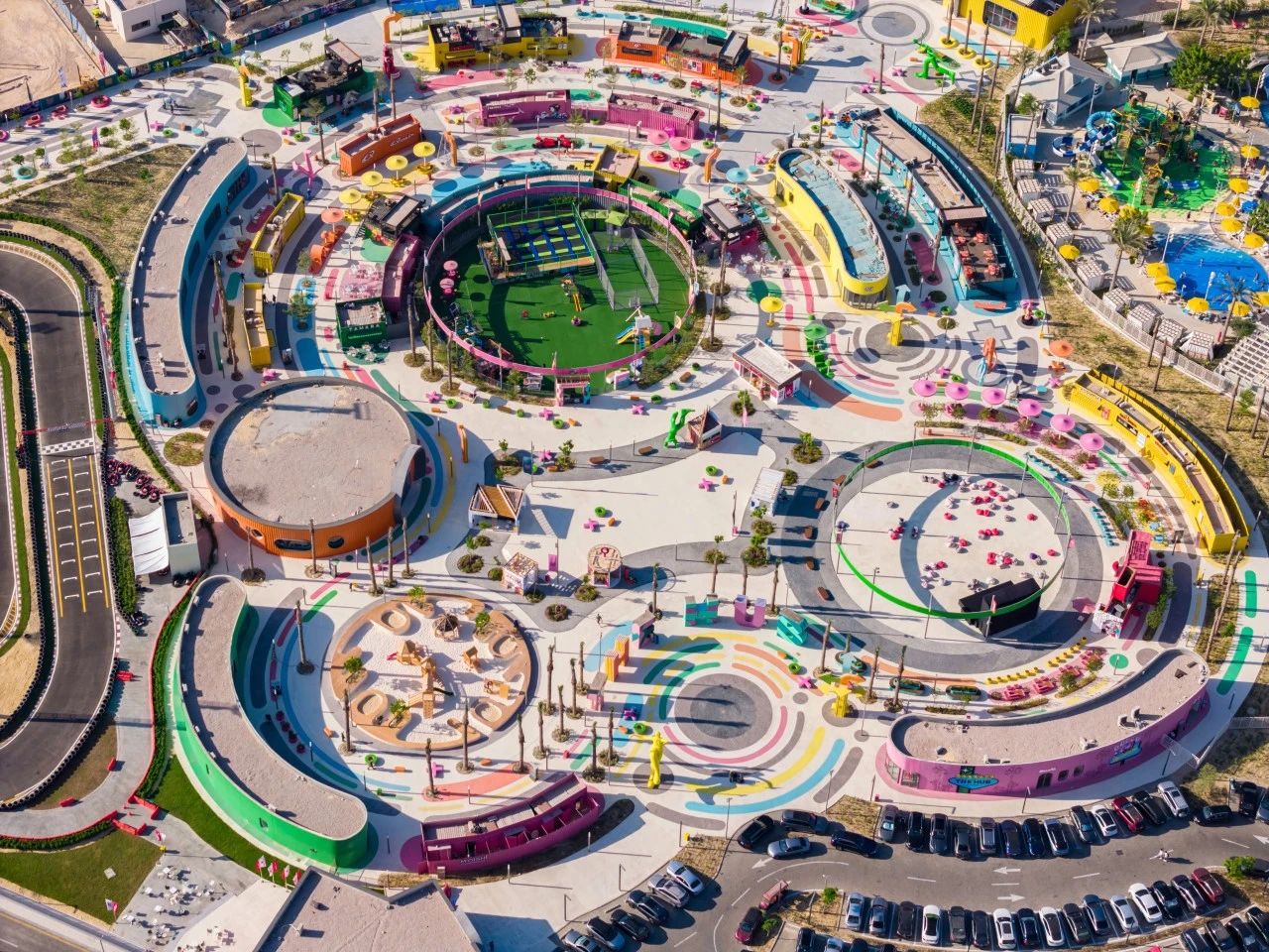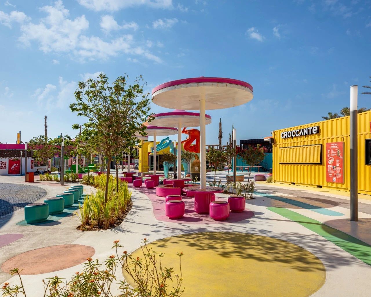 近日,100architects佰筑設(shè)計(jì)事務(wù)所公布埃及北海岸的馬拉奇文旅樂園“The Hub”的建成細(xì)節(jié)。該樂園占地6hm2,設(shè)計(jì)團(tuán)隊(duì)的設(shè)計(jì)時(shí)限只有短短兩個(gè)月,建造的時(shí)限也只有六個(gè)月。面對(duì)緊迫的挑戰(zhàn),設(shè)計(jì)以“大爆炸”為靈感,通過色彩、燈光和設(shè)計(jì)形式的融合,慶祝生命和青春的活力。設(shè)計(jì)巧妙地采用了“三心”布局,打造了圍繞著中央廣場的多功能活動(dòng)空間、游樂場和兒童城三大區(qū)域??臻g經(jīng)過精心設(shè)計(jì)和布置,旨在鼓勵(lì)自發(fā)性的社交互動(dòng)和自我表達(dá),吸引著游客們前來探索、玩耍和交流,使場地成為社交聚會(huì)和青少年表達(dá)自我的理想場所。