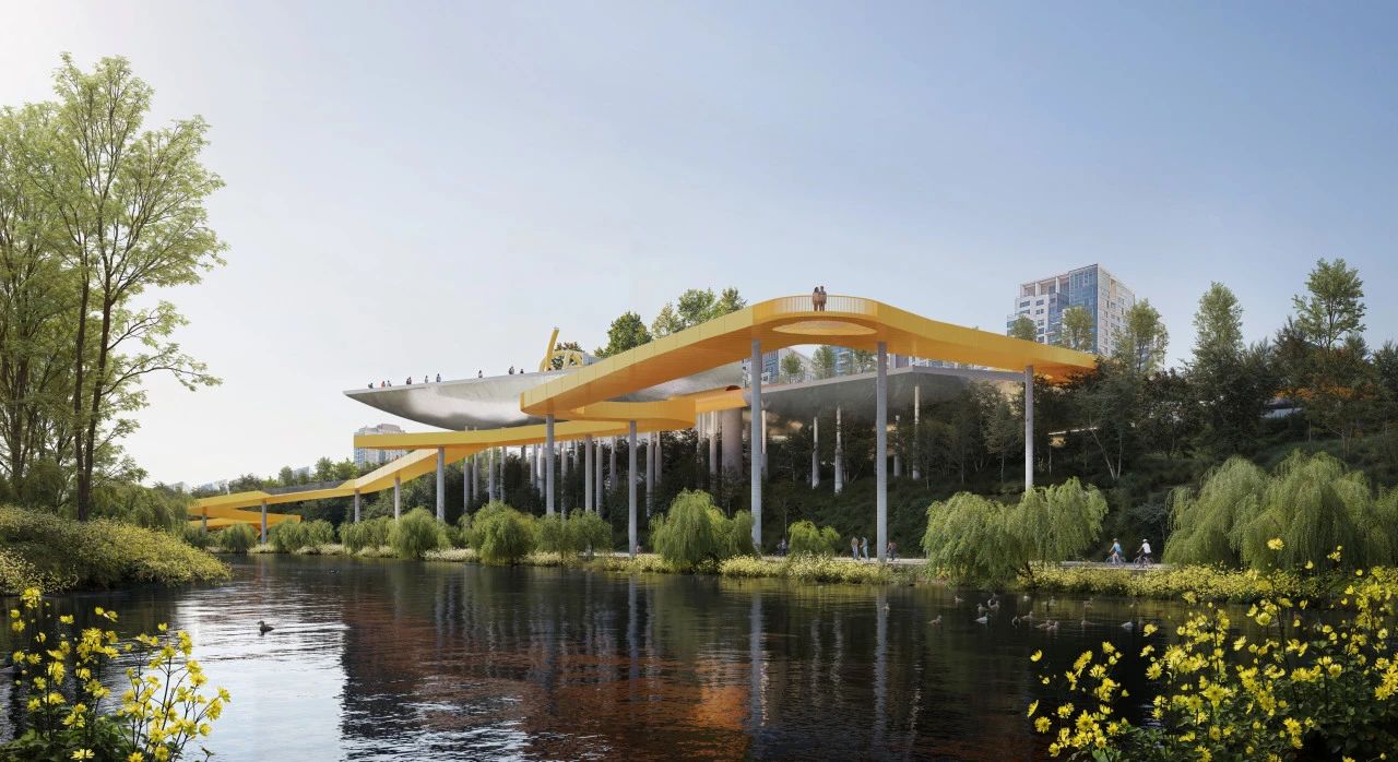 近日,Sn?hetta建筑事務(wù)所公布新作——韓國(guó)首爾盤浦生態(tài)樂園的方案細(xì)節(jié)。項(xiàng)目占地約3.8hm2,毗鄰漢江盤浦公園,橫跨奧林匹克大道。在20世紀(jì)60年代以前,場(chǎng)地一直都是周邊居民的重要活動(dòng)和休憩場(chǎng)所。然而,隨著城市飛速發(fā)展,場(chǎng)地被奧林匹克大道隔絕于周邊社區(qū)之外,內(nèi)部的自然棲息地也隨之變得支離破碎。本次設(shè)計(jì)旨在將沉寂多年的漢江盤浦河岸改造成集生態(tài)景觀、生活?yuàn)蕵窞橐惑w的新型文化地標(biāo),重新連接起首爾的都市生活與漢江的人文敘事。