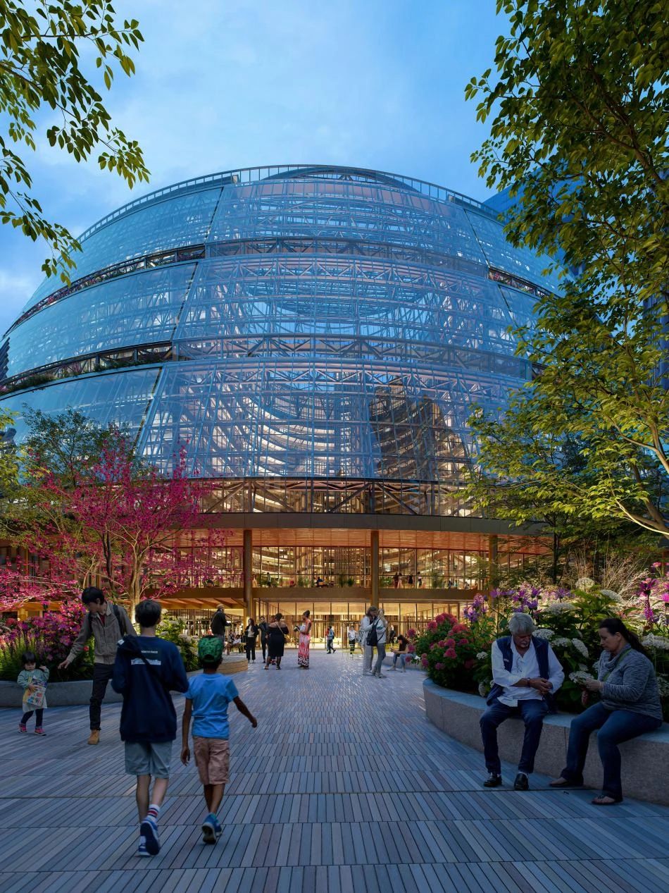 本次改造將保留其標(biāo)志性的藍(lán)色玻璃立面和中庭開放結(jié)構(gòu),同時(shí)通過新的設(shè)計(jì)讓建筑煥發(fā)新生。設(shè)計(jì)重新激活中庭,新增用于會(huì)議、交流、演講等活動(dòng)的階梯式座位區(qū),使其不僅是建筑內(nèi)的公共區(qū)域,也是員工和公眾的互動(dòng)空間。為了營(yíng)造更加宜人的環(huán)境,設(shè)計(jì)在中庭內(nèi)放置了大量綠色植物,形成一處室內(nèi)的“自然景觀”。通過這些設(shè)計(jì)改造,湯普森中心將繼續(xù)作為芝加哥市中心的重要地標(biāo),并轉(zhuǎn)變?yōu)橐粋€(gè)融合了歷史與現(xiàn)代化的綜合體,彰顯谷歌對(duì)歷史建筑保護(hù)和可持續(xù)設(shè)計(jì)的承諾。