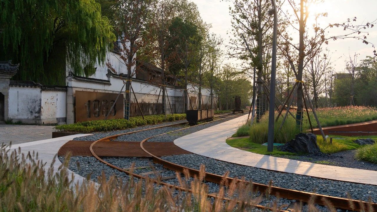 龍游鐵路遺址公園是項(xiàng)目的核心部分。設(shè)計(jì)保留雕塑、廢棄火車、火車軌道、鐵路橋等工業(yè)遺跡,延續(xù)歷史痕跡。此外,設(shè)計(jì)新增“天光廣場”“山林劇場”“山林棧道”等豐富的景觀節(jié)點(diǎn)和園區(qū)游覽小火車,塑造了具有活力、開放與創(chuàng)意的公共空間,使公園成為城市的地標(biāo)性項(xiàng)目,并有效促進(jìn)了人與人之間的交流與互動(dòng)。